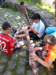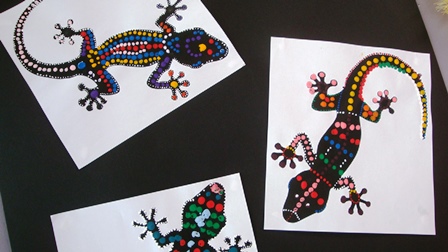 In dieser Projektgruppe erfuhren wir viel Wissenswertes über den australischen Kontinent, seine einzigartige Tier- und Pflanzenwelt sowie seine Ureinwohner, den Aborigines. Besonders interessant für uns war ebenfalls, wie man in diesem weit entfernten Land lebt und natürlich auch zur Schule geht. Dazu gestalteten wir auch ein Projektheft. Wir lernten zudem die ganz besondere Maltechnik der Aborigines, das „Dot-Painting“, kennen und probierten es aus. Ja, wir schafften es sogar mit viel Geduld Schildkröten, Geckos und Schlangen mit der “Punkte-Technik” zu malen. Leider gingen die Projekttage viel zu schnell vorbei!