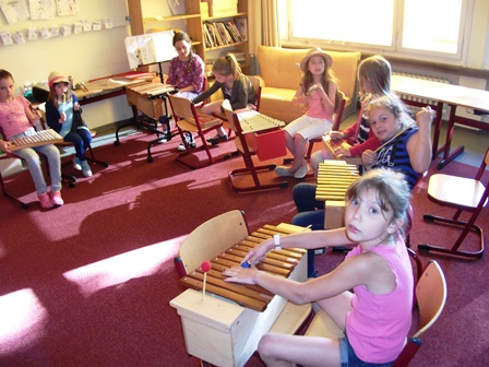 Xylophon: „Der Löwe schläft heut Nacht“ auf den Xylophonen und Glockenspielen zu spielen und zu singen hat uns viel Spaß gemacht.