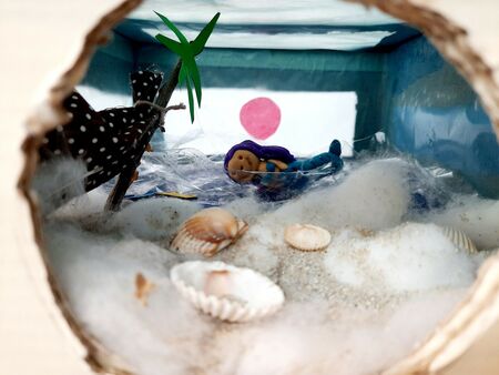 Mithilfe eines Guckkastens gestalteten die Schülerinnen und Schüler innerhalb eines Schuhkartons Szenen, die ihren absoluten Traumurlaub darstellen. Ob unglaublich teuer, unrealistisch oder verrückt: Der Phantasie waren keine Grenzen gesetzt. So stellten sich die Fünfer vor, ihren Urlaub an paradiesischen Traumstränden zu verbringen, in den verschneiten Alpen zwischen wilden Tieren Schlitten zu fahren, in die großen blauen Ozeane der Welt abzutauchen oder ganz relaxt ohne nervige Geschwister im Kinderzimmer zu chillen.