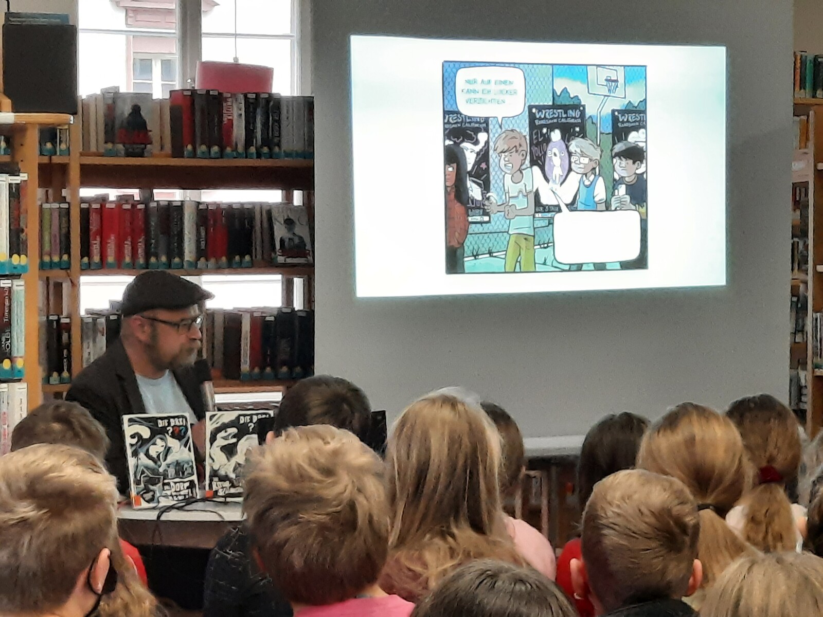 Im Anschluss folgte eine Fragerunde, die den Kindern interessante Einblicke in die Arbeit eines Comiczeichners ermöglichte.