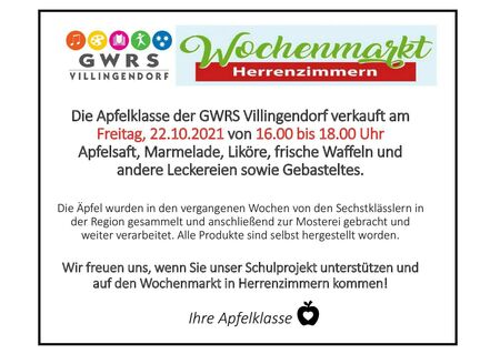 Weitere selbst hergestellte Apfelprodukte werden in der nächsten Zeit auf Wochenmärkten, vor Supermärkten, Bistros usw. von den Sechstklässlern verkauft. Informationen folgen.