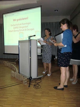 Wirtschaftliche Handlungskompetenz habe längst den Rang einer wichtigen Schlüsselqualifikation erreicht, was sich auch in den aktuellen Bildungsplänen niederschlage, betonte Schulleiterin und Gastgeberin Katharina Hirt. Sie dankte Eva Mürrle für deren professionelles Projektmanagement und äußerte die Hoffnung, dass Schulen und Steinbeis-Stiftung auch zukünftig erfolgreich zusammenarbeiten werden. Zwischen den Redebeiträgen gab es Auftritte eines Rap-Künstlers, der eigens für diese Feierstunde angereist war. Eltern, Angehörige, Lehrer und Wirtschaftsvertreter gaben den Mädchen und Jungen bei der anschließenden Übergabe die Ehre, darunter der Villingendorfer Malermeister Edmund Kammerer.