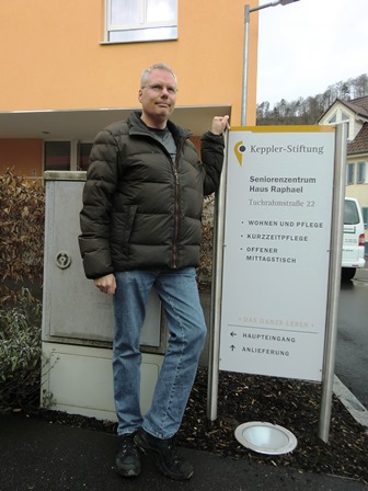 Der Praxistag begann um 8.00 Uhr morgens mit einer Belehrung zum Datenschutz bei Riedel im Büro. Im Anschluss wurde bei der Abstimmung des Einsatzplanes dem beiderseitigen Wunsch Rechnung getragen, wonach Zühlsdorff möglichst in solche Bereiche Einblicke erhalten sollte, wo üblicherweise auch Praktikanten tätig sind. Der Fahrstuhl brachte den Pädagogen dann zum Serviceteam auf Wohnbereich 3. Ihm sei sofort die angenehme Atmosphäre des Hauses aufgefallen, berichtete er später. Tatsächlich unterstreichen großzügige Platzverhältnisse, warme Farben, viel natürliches Licht und schöne Möbel ein nachhaltiges Gefühl des Willkommenseins, das von den Mitarbeitern gelebt wird. Der Spagat zwischen penibler Sauberkeit, diskreter Installation von technischen Hilfsmitteln und die liebevolle Verwirklichung von vertrauter Heimat ist hier wirklich gelungen. Bereits im Eingangsbereich empfängt den Besucher statt trister Erschließungsgänge eine einladende Dschungellandschaft. „Die Dekorationen wechseln mit den Jahreszeiten“, stellte Riedel fest. Dabei folge jeder Wohnbereich einem gemeinsamen Motto. Zur Fasnet sei jetzt das Urwaldthema gewählt und von allen Beteiligten umgesetzt worden.