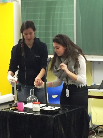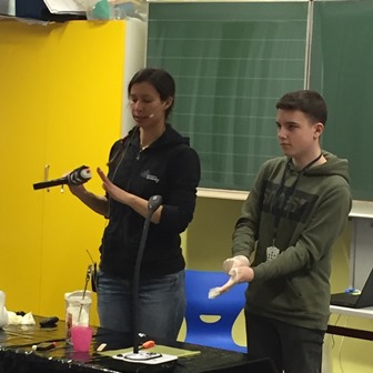 Das Science Mobil war Gast bei den Schülern der 7., 8. und 10. Klasse der Werkrealschule Villingendorf. Bei der berufsorientierenden Show „Chemikant & Co. - die geniale Quizshow“ drehte sich alles um ungewöhnliche Materialien und welche Berufsgruppen sie herstellen. So produzierten die Jugendlichen beispielsweise aus Silikon und Speisestärke einen Kunststoffhenkel. Die Schülerinnen und Schüler erfuhren, wie Kriminalisten Blutspuren nachweisen, auch wenn diese mit dem bloßen Augen nicht mehr sichtbar sind. Auch die Frage, ob Autolacke in Zukunft je nach Sonneneinstrahlung ihre Farbe verändern und somit Energiekosten senken könnten, war Thema des spannenden und interessant gestalteten „Unterrichts“. Anhand von Versuchen und Quizfragen gelang es, den Jugendlichen eine Vorstellung von Tätigkeitsfeldern in der Chemie zu vermitteln. Und wer weiß, vielleicht entscheidet sich eine oder einer für eine Ausbildung in der chemischen Industrie.