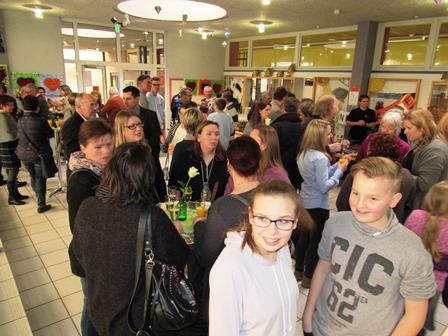Engagierte Schüler- und Elternvertreter, das Team der Schule, Vertreter des Schulträgers und Kooperationspartner beim Stehempfang