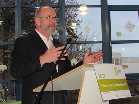 Bei einem vom Schulträger ausgelobten Stehempfang unter dem professionellen Catering der aktuellen Irlandklasse mit dem Klassenlehrer Stefan Bihl in der Villingendorfer Schule konnten die Vertreter der Schulgemeinschaft und ihre zahlreichen Partner aus Kultur und Wirtschaft auf die besondere Ehrung anstoßen. Denn ohne ein gewachsenes Netzwerk von zugewandten Vereinen, Institutionen, Vereinen und Einzelpersonen ist keine Schule wirklich „stark“.