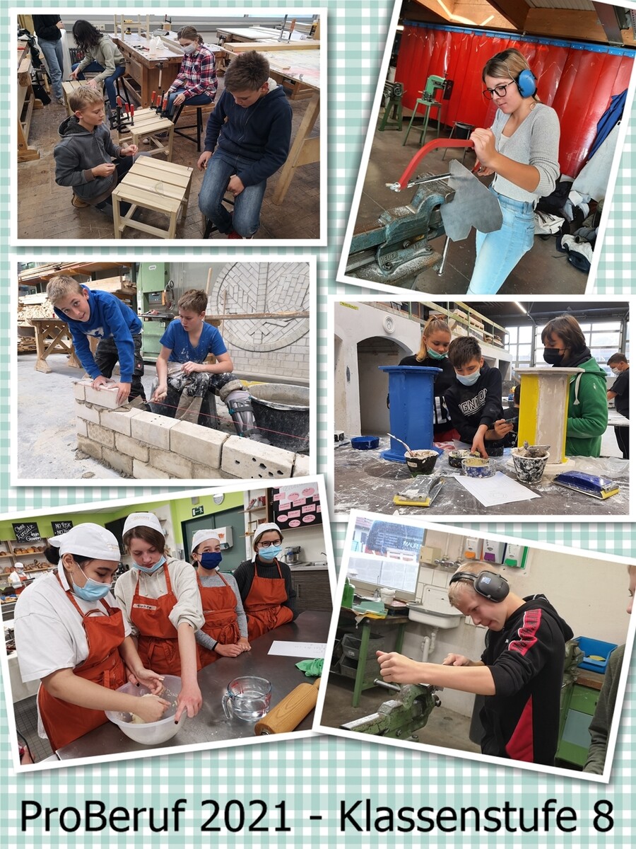 In Gruppen durchliefen die Schüler die Berufsfelder rund um das Schreinern, die Elektrik, das Zimmern, Stucken, Maurern, sowie Metall und Bäcker und Verkauf. Vorab konnten die Berufe nach Interessen ausgewählt werden. Jede Gruppe lernte insgesamt vier Berufsfelder kennen.