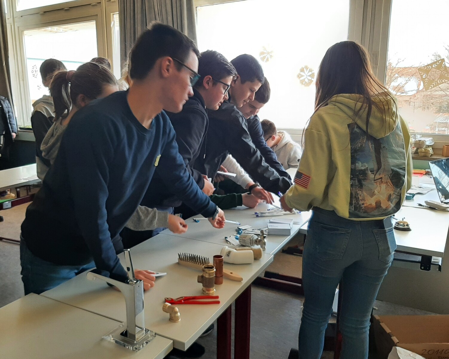 Auch über Aufstiegs- und Weiterbildungsmöglichkeiten wurde informiert. Vom Obermonteur zum Bauleiter über den Meister, Techniker bis hin zum Studium ist bei beiden Berufsfeldern sehr viel möglich. Zum Schluss erhielten die Schüler noch jeweils einen Entlüftungsschlüssel und andere kleine Präsente von der Firma Maurer überreicht. Alles in allem war es ein sehr informativer und spannender Nachmittag, der den Schülerinnen und Schülern viele beruflichen Perspektiven aufgezeigt hat, die diese auch sehr interessiert und wissbegierig aufgenommen haben.