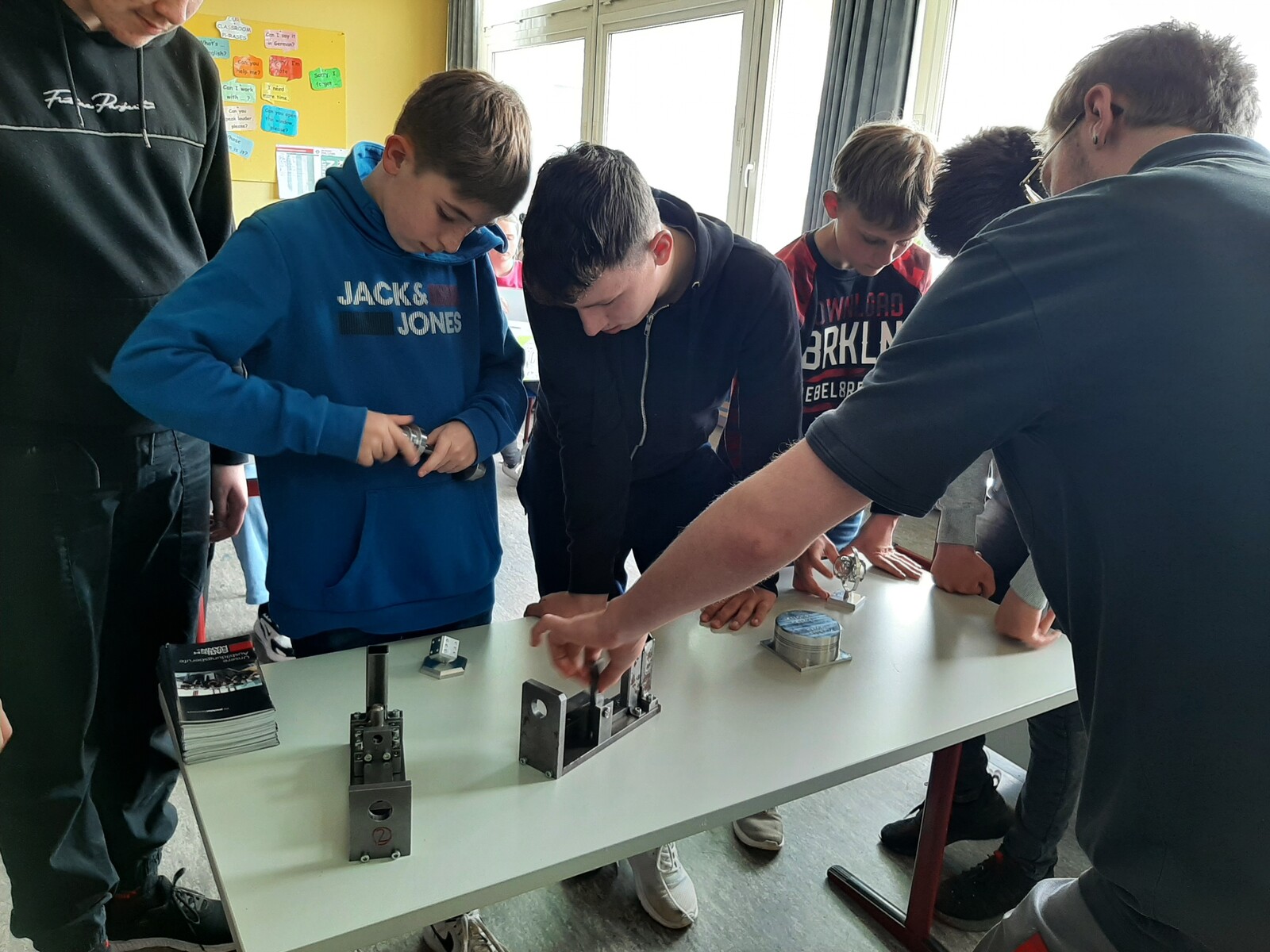 Nach einer abschließenden Fragerunde durften die Schülerinnen und Schüler noch mitgebrachte Werkstücke besichtigen und hatten Gelegenheit, mit individuellen Fragen ins Gespräch mit den Ausbildungsbotschaftern zu kommen.