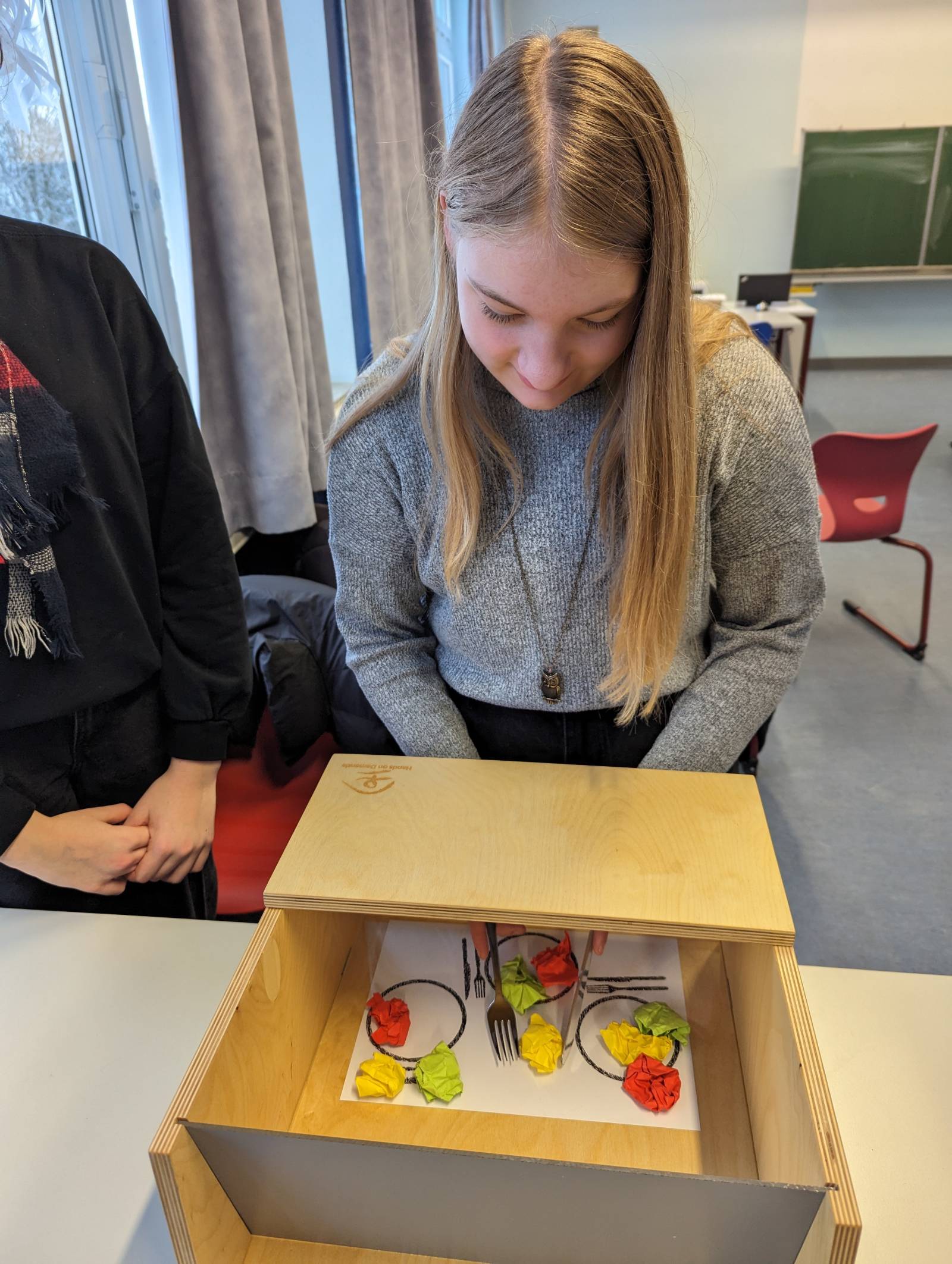 Im Anschluss konnten die Schülerinnen und Schüler im Rahmen eines Demenzparcours anhand verschiedener Aufgaben selbst erfahren, wie sich ein Demenzkranker wohl beim Bewältigen von scheinbar einfachen Alltagsaufgaben fühlen muss. Die Achtklässler mussten dabei feststellen, dass die Aufgaben weitaus schwieriger zu bewältigen waren, als sie zunächst annahmen.