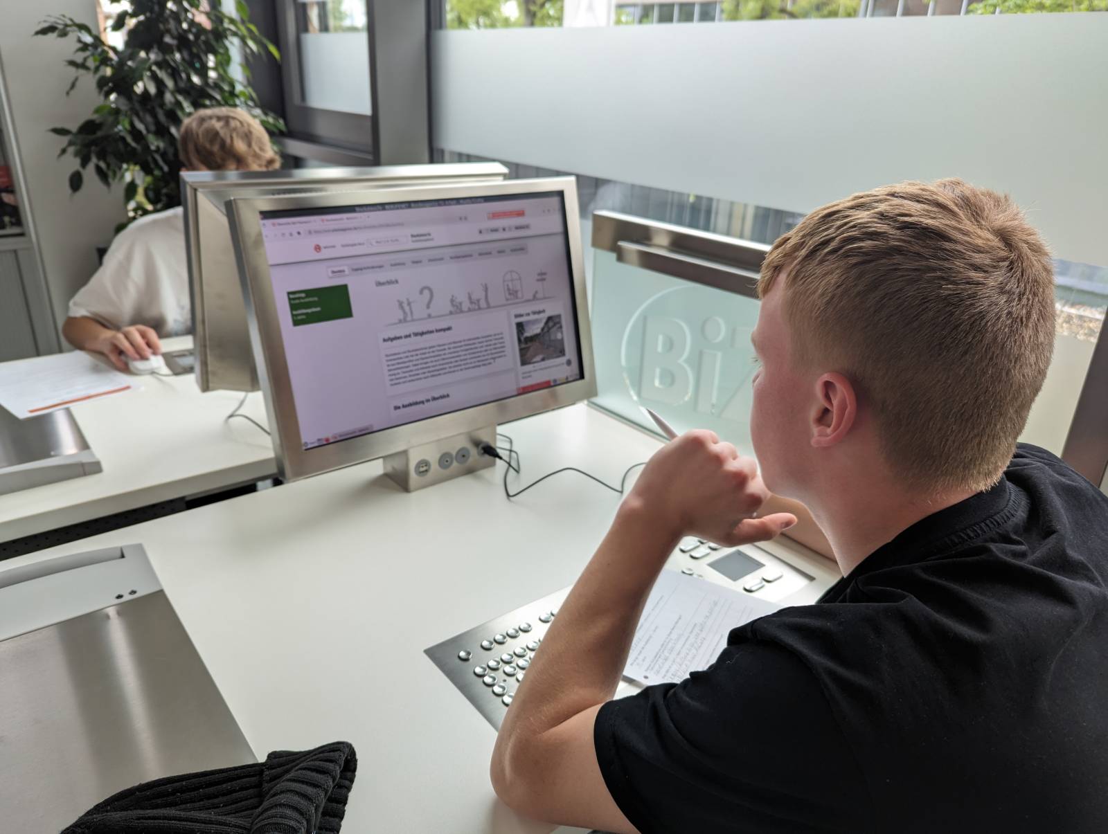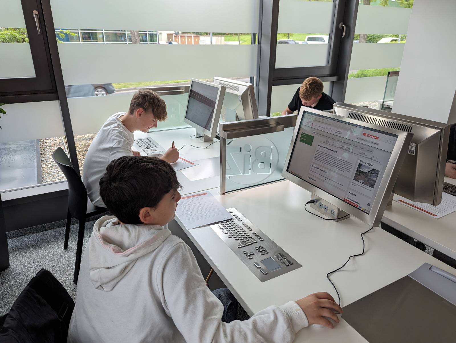 Im BiZ, Berufsinformationszentrum der Agentur für Arbeit in Rottweil, hatten die Schülerinnen und Schüler nun erneut die Gelegenheit, sich ganz intensiv über ihre Berufsfindung Gedanken zu machen. Monika Hattler, die auch wöchentliche Berufsberatung direkt vor Ort in der Schule anbietet, unterstützte die Jugendlichen dabei tatkräftig. So hatten die Schüler die Gelegenheit, sich über ihren (Traum-)Beruf genauer zu informieren sowie mittels eines Szenarios, bei dem sie sich vorstellen sollten, als Gruppe auf einer einsamen Insel gestrandet zu sein, Berufe zu überlegen, die zum Überleben notwendig sind. So stellten die Schülerinnen und Schüler fest, dass es hierzu ganz schön viele verschiedene Berufsbranchen bedarf und jeder Beruf seine Bedeutsamkeit und Wichtigkeit hat.
