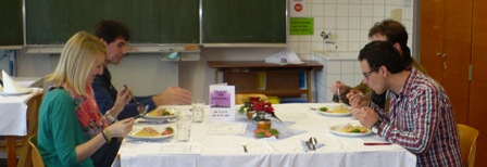 Aufgabe war es, zu Spaghetti eine selbstgemachte Sauce zuzubereiten. Nach Recherchen und selbstständigem Einkauf gab es zuerst eine Vorentscheidung. Diese orientierte sich an den Kriterien Tischdekoration, Einladung und Menükarte sowie die Ausgestaltung des Pasta-Gerichtes. Vier Gruppen traten in einem Finale gegeneinander an und verwöhnten die Jury, welche sich aus dem Villingendorfer Lehrer Jan Hofelich, Rektor Rainer Kropp-Kurta, Kämmerer der Gemeinde Villingendorf, Michael Hardtmann und der Zimmerner Schulsozialarbeiterin Gudrun Reichle zusammen setzte. Das Finale war mit der gleichen Punktzahl für die Qualität des Essens ein echtes „Kopf-an Kopf-Rennen“. Zünglein an der Waage war die Tischdekoration, die dem „Epfendorfer Team“, den Schülerinnen Carina Imhof, Angelina Niederquell, Selina Ott und Nadja Saam den mit einem Geschenkgutschein dotierten ersten Platz sicherte.