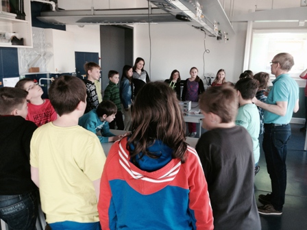 Anschließend konnten alle in Kleingruppen die vielen Experimentierangebote ausprobieren. Alle Stationen vom Technikbereich über die Kommunikationsebene bis hin zum Energie- und Umweltangebot wurden getestet. Die Schülerinnen und Schüler waren mit großer Begeisterung dabei. Regen Anlauf genoss die Talentschmiede der Experimenta. Neben fleißigen Modellautobauern fanden sich auch talentierte Musiker und Sänger ein, die am Ende des Tages das Science House mit ihrem selbstkomponierten Lied verließen. Auch die Bewegung kam nicht zu kurz. In der Sonderausstellung stand die eigene Energie im Vordergrund und so musste mancher Schüler recht lange auf einem Fahrrad fahren, bis er den nötigen Stromverbrauch eines Handmixers erradelt hatte.