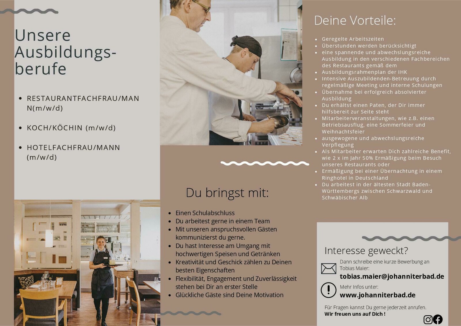Ausbildungsberufe: Restaurantfachmann (m/w/d); Koch/Köchin (m/w/d); Hotelfachfrau/mann (m/w/d)