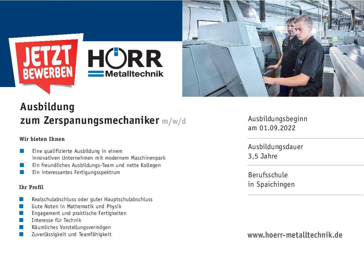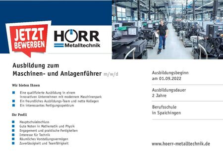 Sie wünschen sich einen Beruf mit Zukunft, der Ihnen hervorragende Perspektiven und vielfältige Weiterbildungs- und Aufstiegsmöglichkeiten bietet? Dann entscheiden Sie sich jetzt für eine Ausbildung bei Hörr Metalltechnik.