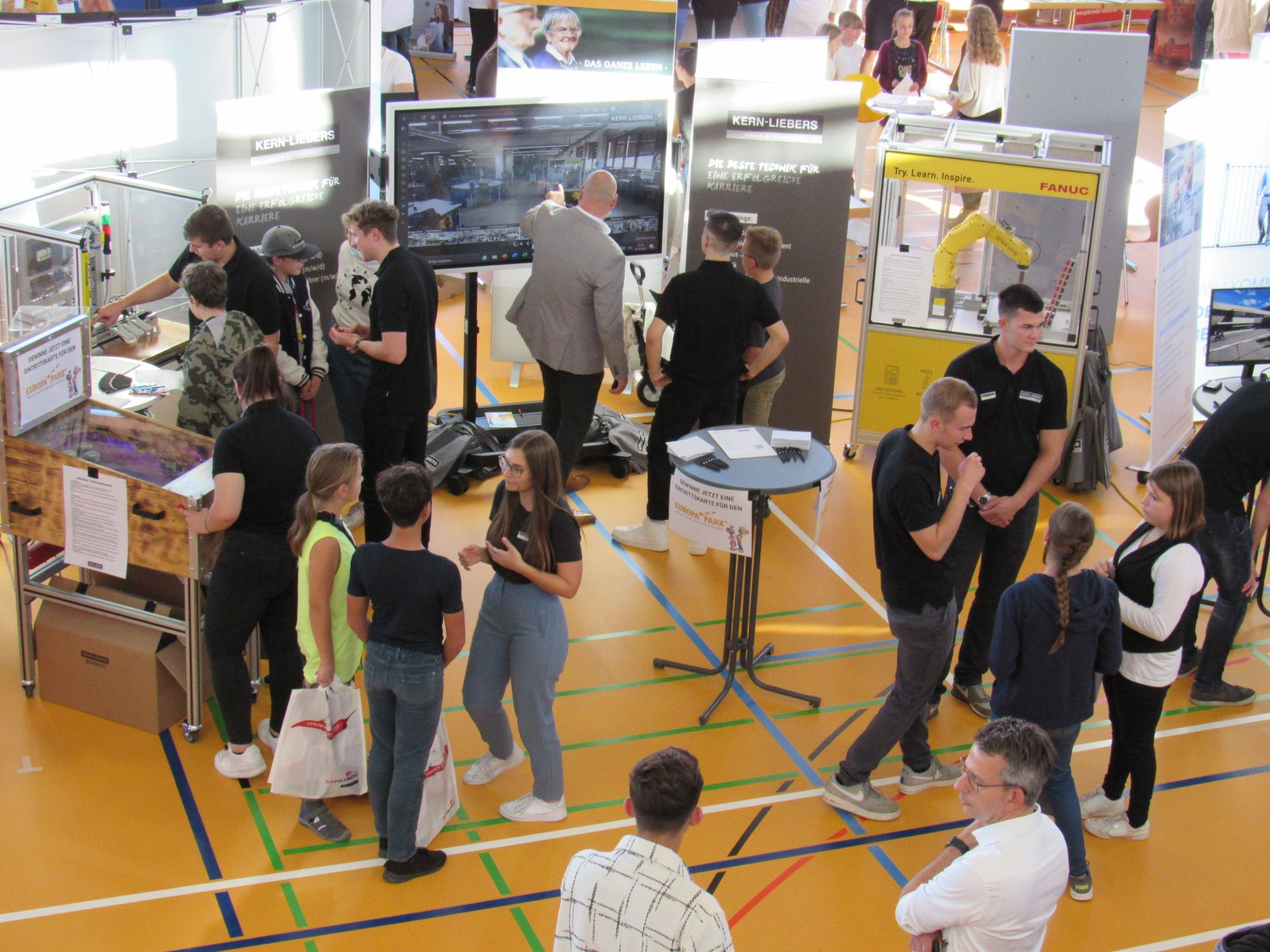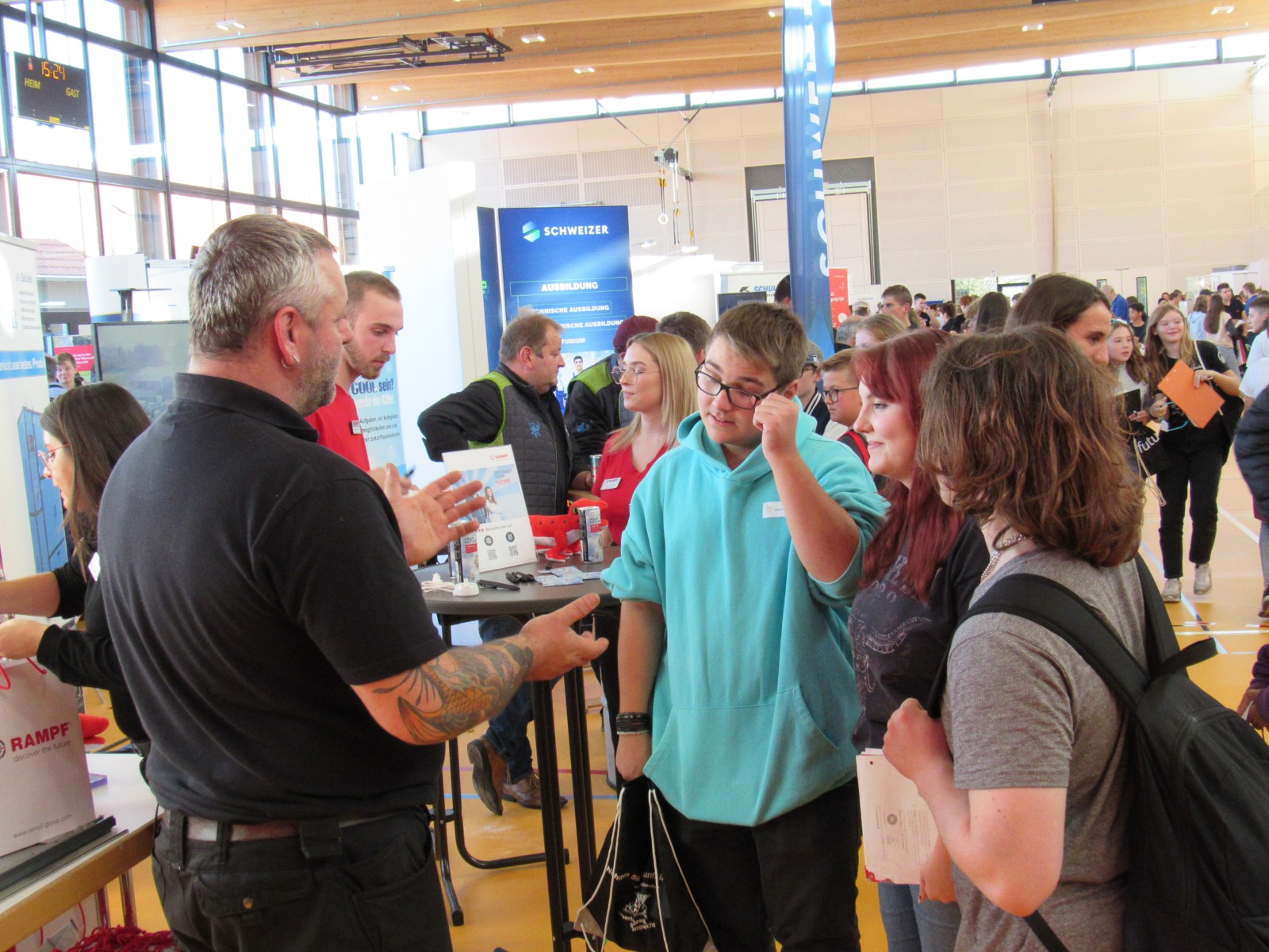 Das achte „Regionale Berufsforum“ der Grund- und Werkrealschule Villingendorf wurde am 27. Oktober 2022 für drei Stunden von 48 Firmen und Institutionen der Region getragen. Organisator und schulischer BO-Beauftragter Torsten Zühlsdorff zeigte sich dankbar: „Das kooperative Zusammenwirken von Wirtschaft und Schule ist beeindruckend“. Dirk Christen, Personalbetreuer Ausbildung, freut sich über die rege Nachfrage am Stand der Schwäbischen Werkzeugmaschinen GmbH: „Die anwesenden Betriebe zeigen einen großen Querschnitt, Handwerk, die Industrie, Gesundheit & Soziales, Handel, Öffentlicher Dienst und das Finanzwesen“. „Zum anderen sind ausschließlich Ausbildungsbetriebe vor Ort, die für unsere Schülerinnen und Schüler auch örtlich erreichbar sind.“, ergänzt Zühlsdorff.