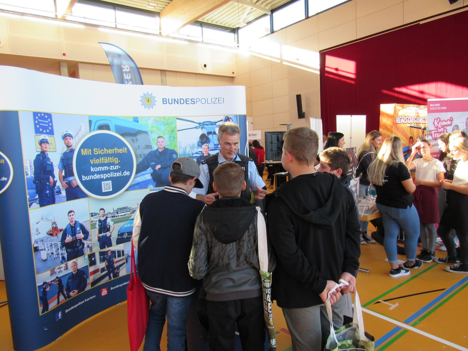 Der Messe lag ein ausgefeiltes pädagogisches Konzept zu Grunde. Die Jugendlichen zeigten ihre individuellen Interessen mit kleinen Textilaufklebern und den entsprechenden Logos von Handwerk, Industrie und den weiteren Wirtschaftszweigen. An den Ständen der Betriebe galt es dann zielführende Gespräche zu führen. Ein gutes Gespräch wurde vom Wirtschaftsvertreter mit einem Stempel honoriert, bei mehreren Stempeln auf der „Messe-Card“ wurde die Teilnahme an einer Verlosung mit attraktiven Preisen ausstellender Betriebe möglich. Die attraktiven Preise motivierten die Jugendlichen sichtlich.