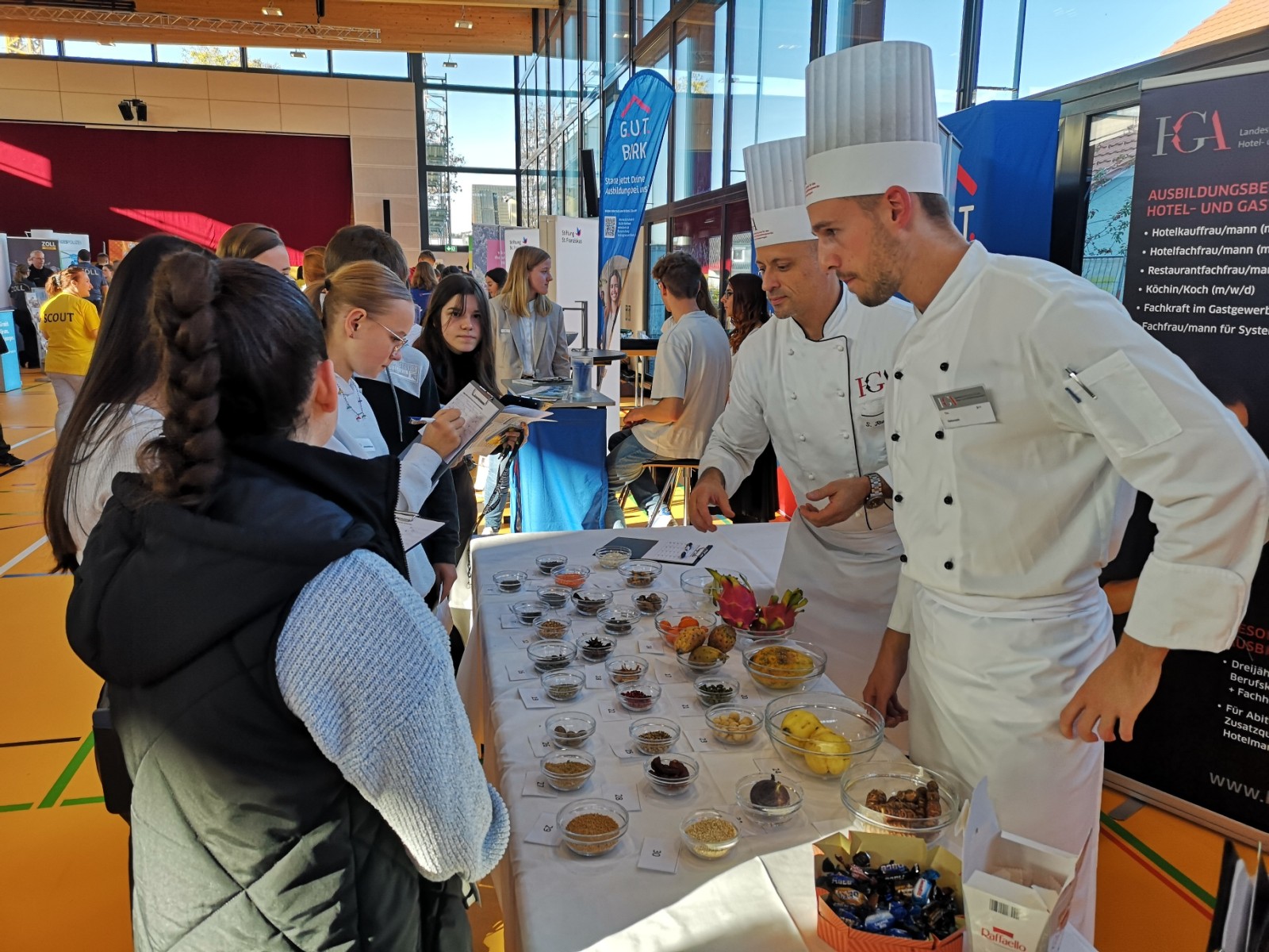 Um die Hemmschwelle für die Schülerinnen und Schüler möglichst gering zu halten, schickten die Betriebe auch ihre Auszubildenden ins Rennen und „Messescouts“ - engagierte Eltern – halfen hier und da, das Eis zu brechen. Nach einer Evaluation des erfolgreichen Berufsforums im Frühjahr, wurde die Veranstaltung auf vielfachen Wunsch der Aussteller um eine Stunde verlängert. Tatsächlich nutzen vermehrt Eltern die Abendstunde, um mit ihren Kindern noch eine Runde durch die Villingendorfer Halle zu drehen.