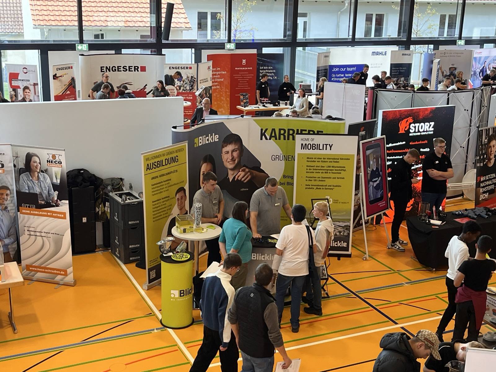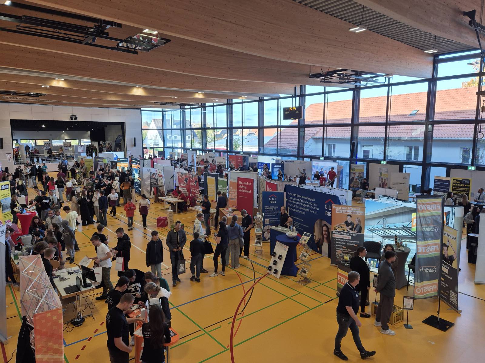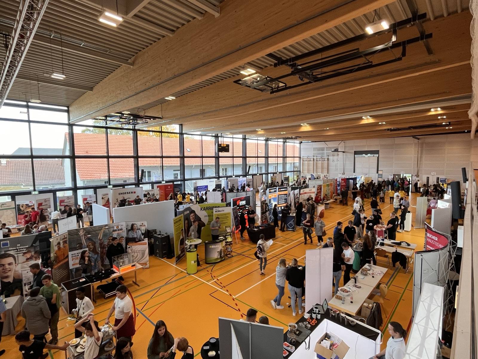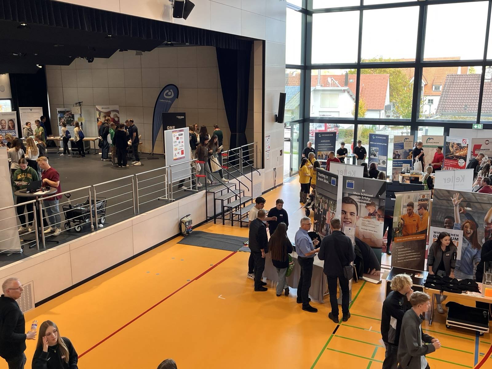 Organisiert durch die GWRS Villingendorf fand am vergangenen Donnerstag die zehnte Ausgabe der Messe für Praktikum, Ausbildung und Beruf in der Mehrzweckhalle sowie rund um den Schulcampus statt. 68 Unternehmen aus den Bereichen Handwerk, Industrie, Gastronomie, Handel, Finanzen, öffentlicher Dienst und Gesundheit/Soziales präsentierten sich den zahlreichen Besuchern. Im Außenbereich zeigte die freiwillige Feuerwehr Villingendorf über spannende Mitmachangebote, welche Möglichkeiten das Ehrenamt bereithält.