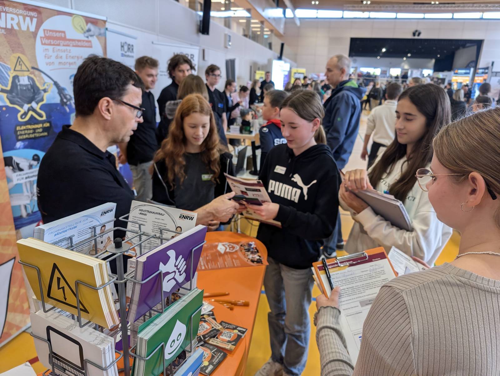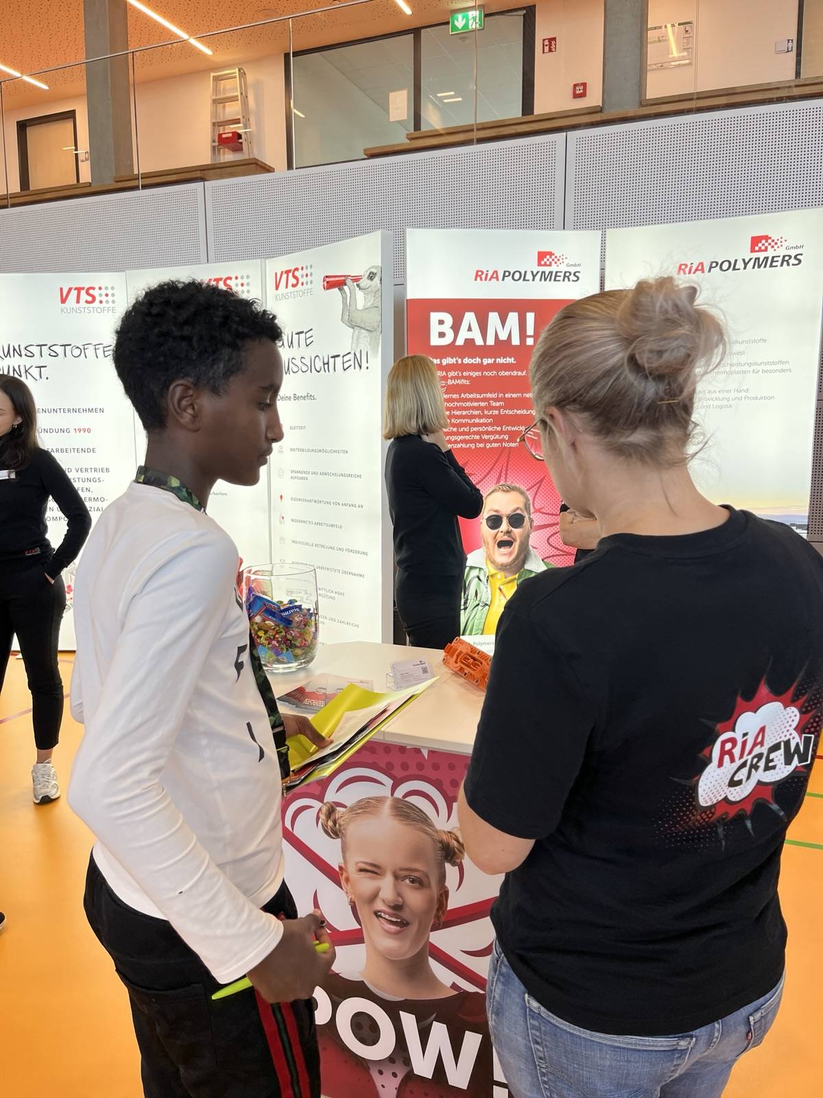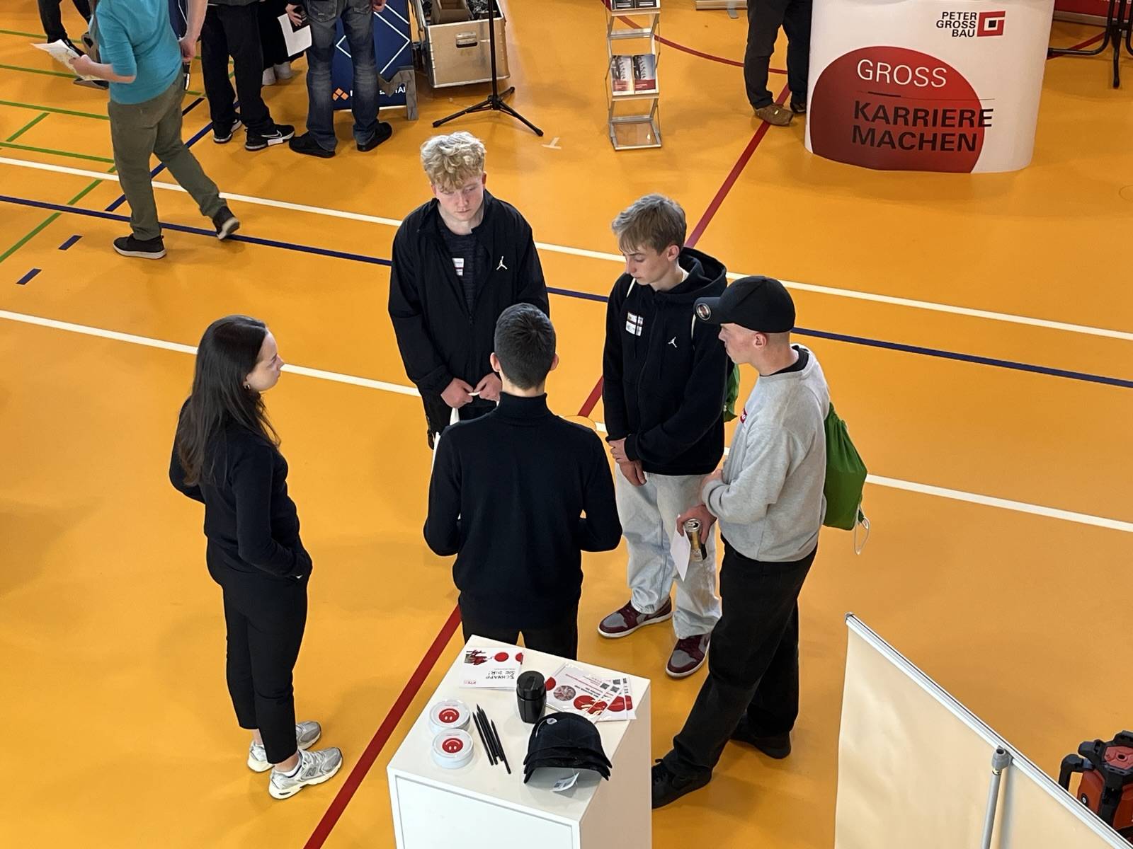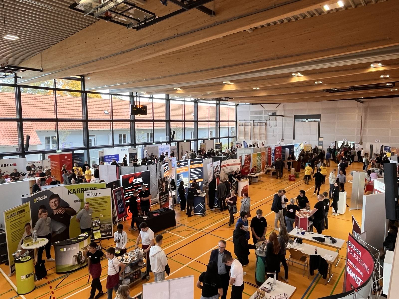 „Das Interesse der Jugendlichen und die Qualität der Gespräche waren erneut sehr gut. Wir konnten einige Termine für Praktika vereinbaren“, zeigte sich einer der Personalverantwortlichen überaus zufrieden. „Organisation und Durchführung der Messe sind seit Anbeginn vorbildlich, wir sind nächstes Jahr gerne wieder mit dabei“, ergänzte ein Anderer. Mit Praxisangeboten, Hammer und Nagel, Quizfragen oder auch einer Virtual Reality Brille wurde um die Aufmerksamkeit der Besucher geworben. Joachim Mauerlechner, ein weiteres Mitglied des Organisatorenteams, legte den Fokus auf die Besonderheiten der Messe: „Ein kurzes, hochintensives Zeitfenster, ein jährlich weiterentwickeltes Messekonzept und Messescouts helfen den jungen Besuchern bei ihrer Kontaktaufnahme und Gesprächsführung.“ Zudem zeigten sogenannte Messebuttons am Revers der Schüler, in welchen Bereichen ein besonderes Interesse bestand. Mithilfe einer Farbcodierung war es so den Ausstellern möglich, auch selbst ganz gezielt auf die Messebesucher zuzugehen.
