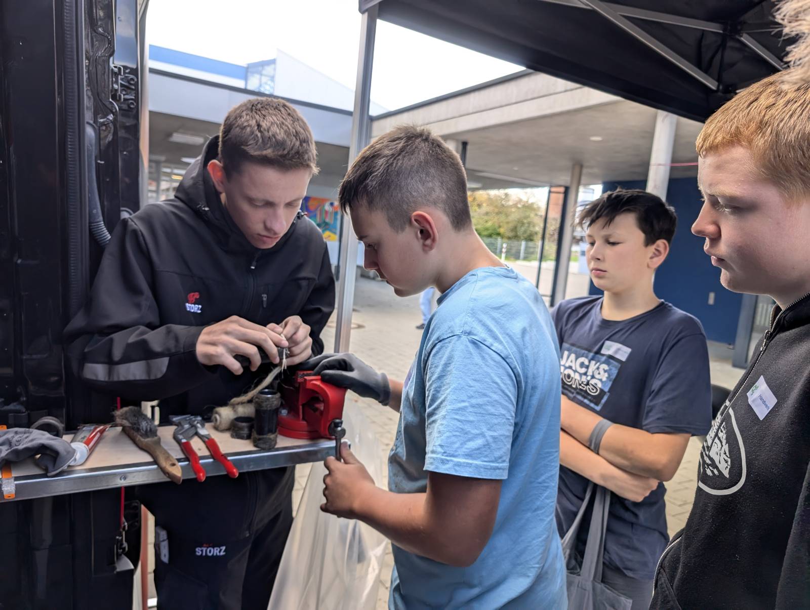 Im Rahmen des Messerundgangs wurde Schülern, Eltern und weiteren Besuchern die Ausbildungsvielfalt im Landkreis Rottweil aufgezeigt. Rektorin Eugenia Remisch betonte dabei die Vorzüge der betrieblichen Berufsausbildung: „Die Vermittlung von grundlegendem Praxiswissen gelingt im dualen System unter Beteiligung von Betrieben und Berufsschulen besonders gut.“ Dieses Konzept habe sich über Jahrzehnte bewährt und biete den jungen Menschen neben der qualifizierten Ausbildung sämtliche Chancen auf der beruflichen Karriereleiter.