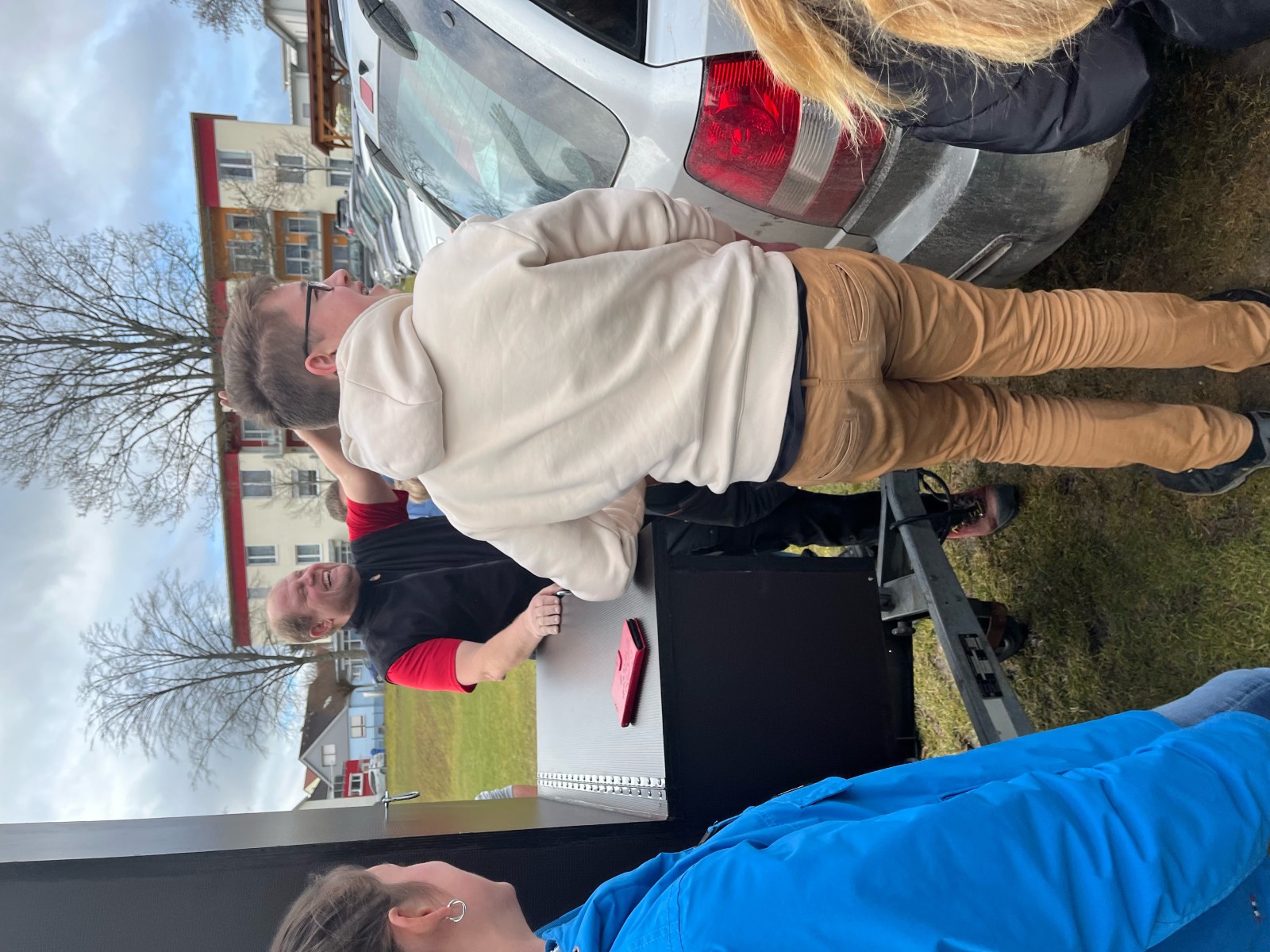 Am Freitag war es endlich soweit! Gemeinsam mit unserem Hausmeister Uli Müller durften wir bei der Zimmerei Nester den Hühnerstall abholen. Ein ganz besonderer Dank noch einmal an Andreas Nester und sein Team für die großartige Unterstützung und Umsetzung! Die Projektprüfungsgruppe ließ es sich nicht nehmen, ein kleines Vesper und eine Dankeskarte als Anerkennung zu übergeben.