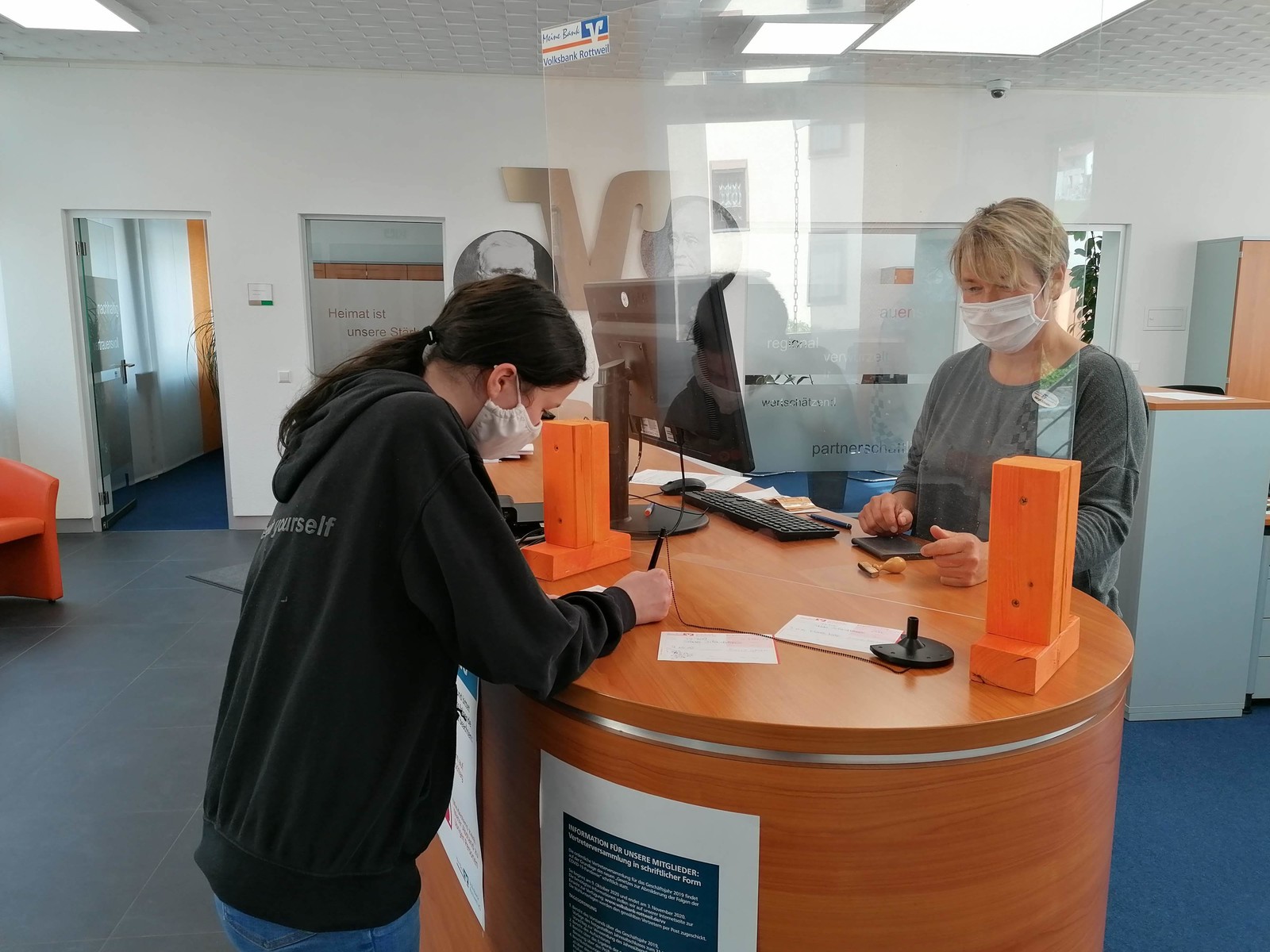 Letzte Woche durfte der Vorstand der Irlandklasse sein eigenes Konto eröffnen. Nachdem Frau Schmider von der Volksbank in Villingendorf alle benötigten Unterlagen vorbereitet und erklärt hatte, unterzeichneten Thora und Bianca das offizielle Konto der Irlandklasse. Im Anschluss daran wurden auch schon die ersten Verdienste eingezahlt.