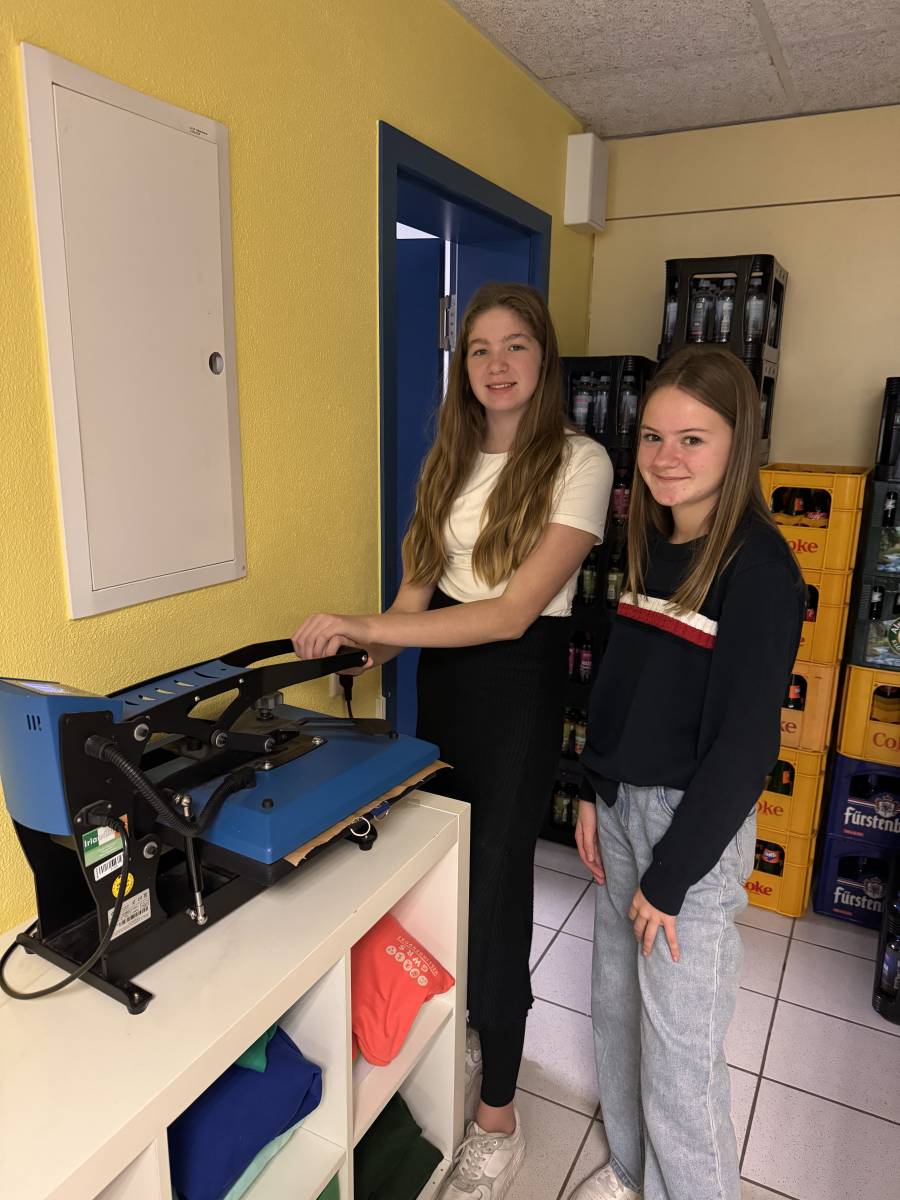 Als sie dann überprüft hatten, ob die Bestellungen aus der Schulgemeinschaft bezahlt wurden, gingen sie an die Produktion. Im Plotter-Programm wurden die Namen eingegeben und mit dem Plotter schließlich gedruckt.