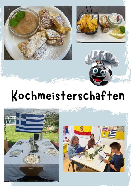 Die Kochmeisterschaft finden alle zwei Jahre statt, passend zur Weltmeisterschaft oder Europameisterschaft und verbindet so kulinarischen Wettkampf mit dem Flair eines internationalen Sportevents. Bei der Kochmeisterschaft treten verschiedene Schülergruppen in einem spannenden Wettkampf gegeneinander an. Jede Gruppe hat ein Land ausgewählt und kocht landestypische Gerichte, die sie mit viel Kreativität und Engagement zubereiten.Die Gruppen kämpfen in der Vorrunde sowie dem Viertel- und Halbfinale um den Einzug ins Finale. Dabei werden unterschiedliche Kriterien wie das Aussehen der Speisen, Geschmack, Kreativität, Küchenorganisation und Tischdekoration bewertet.