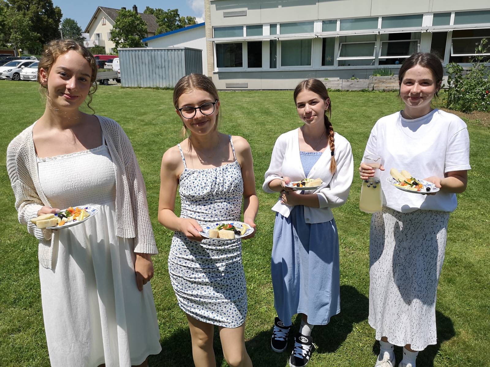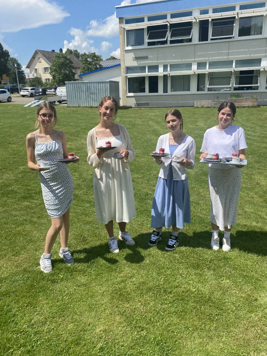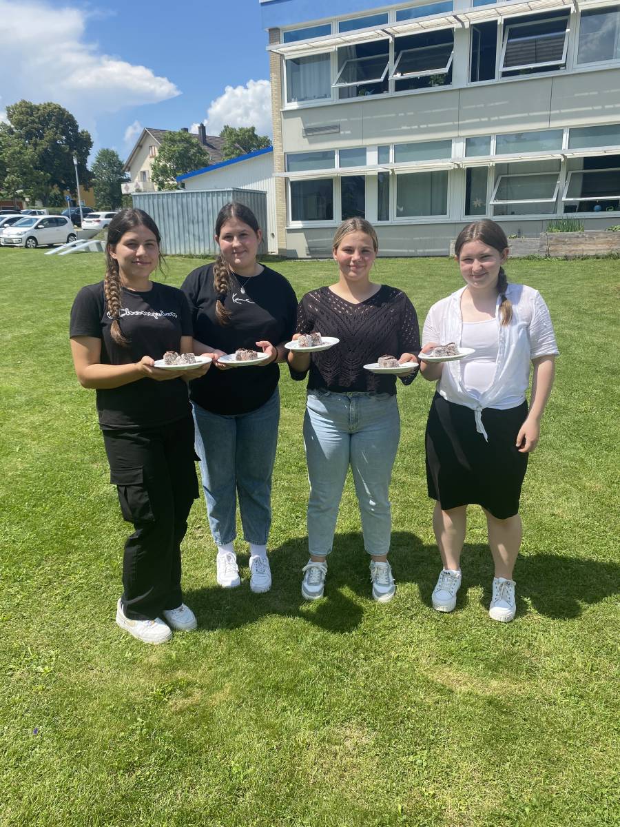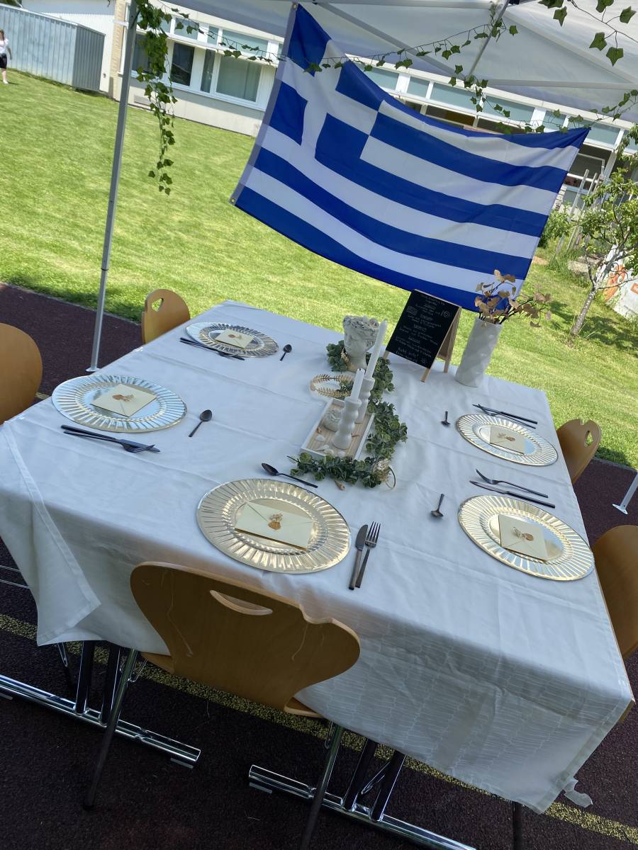 Das Team „Griechenland“, vertreten von Leonie Seifried, Lorena Janzen, Nathalie Pietruszka und Lea Klassen servierten typischen griechischen Salat mit Feta, würzige Gyros mit selbstgemachtem Tzatziki und Kartoffelecken sowie griechisches Joghurt Mousse mit Himbeerspiegel.