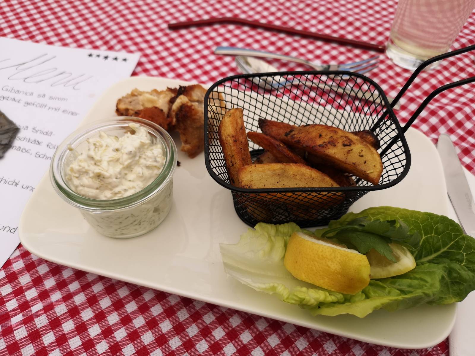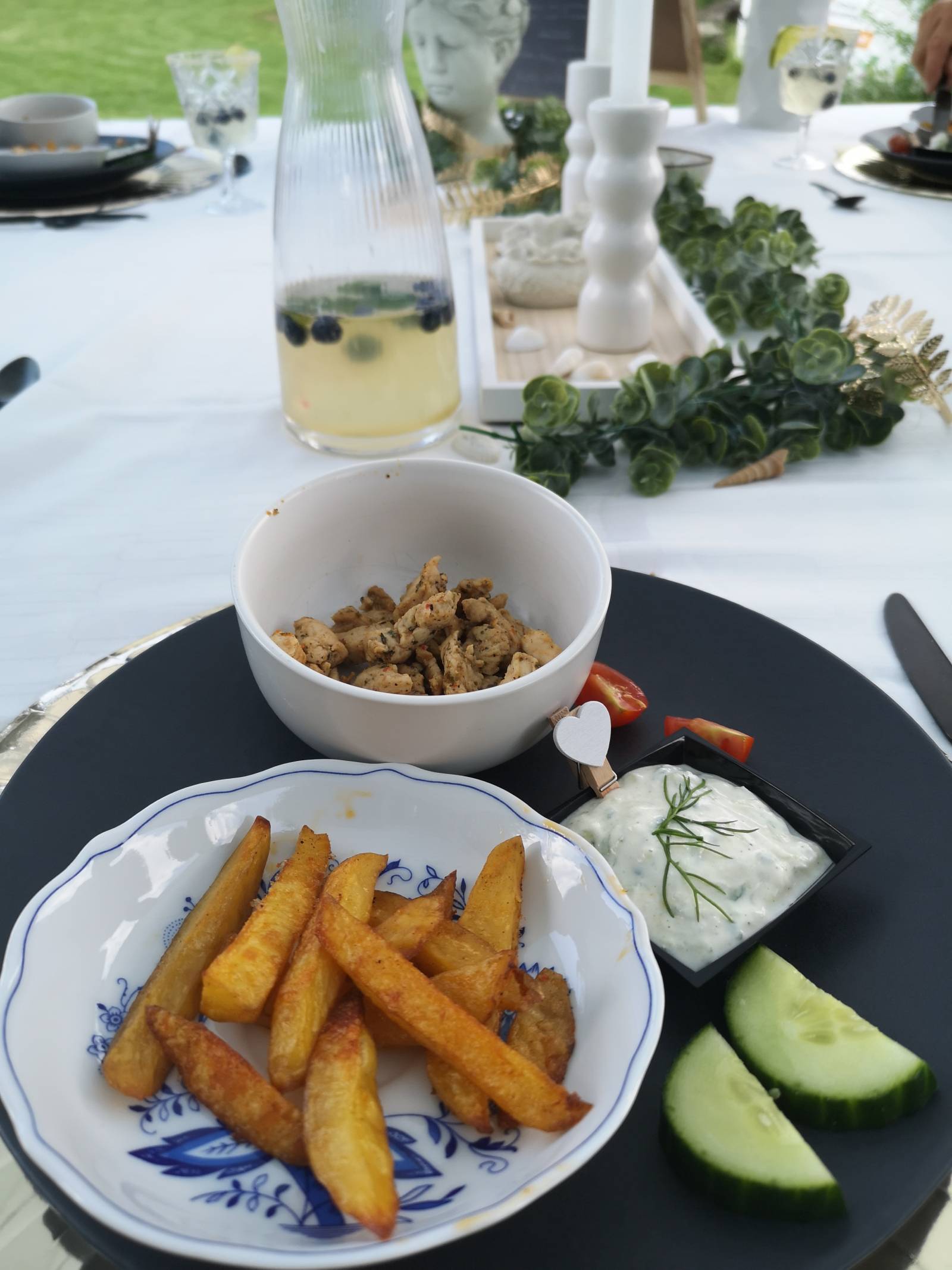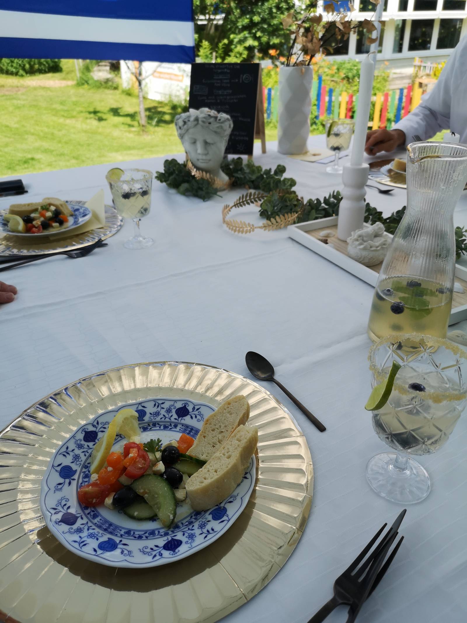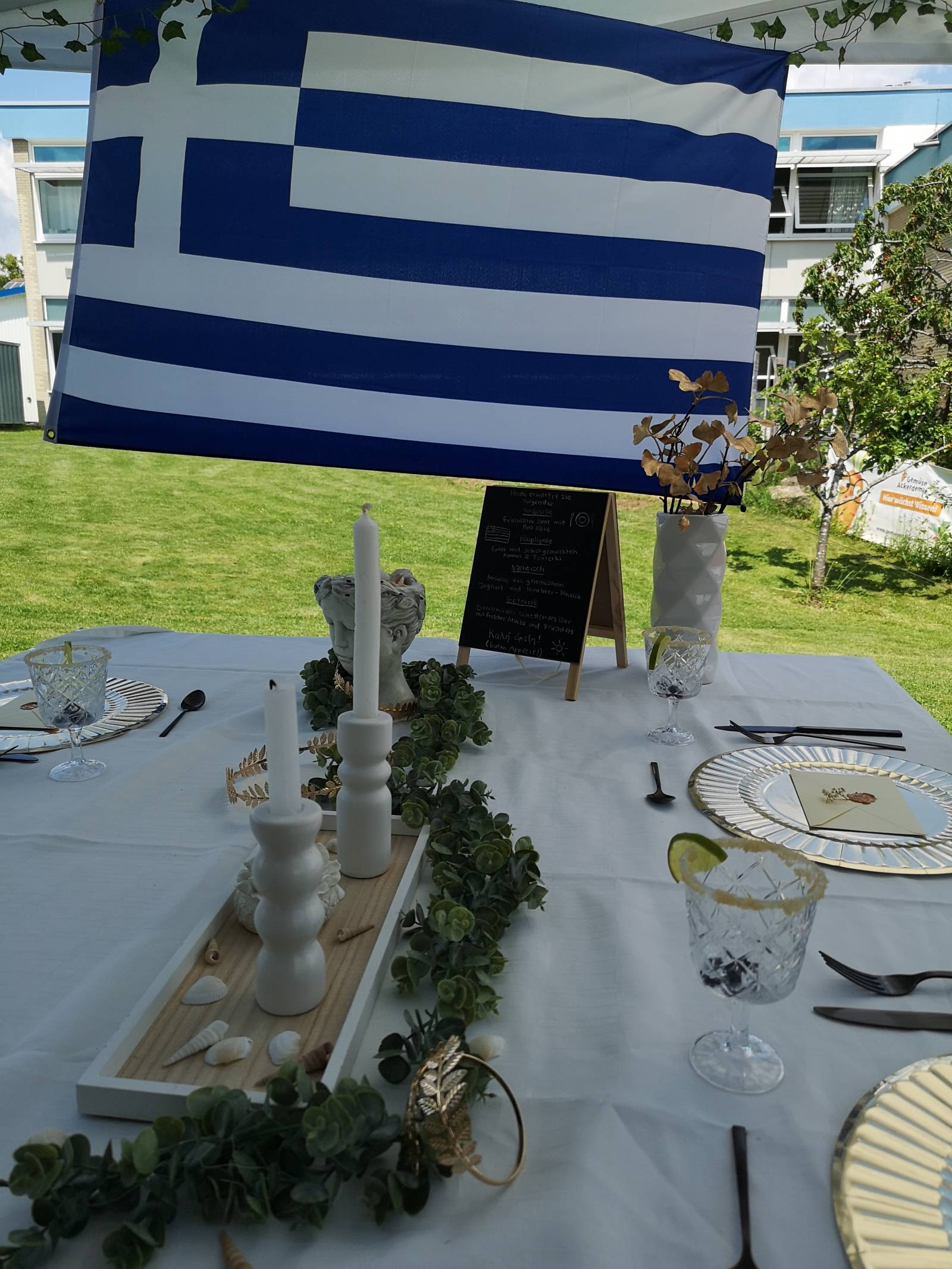 Das Team „Griechenland“, vertreten von Leonie Seifried, Lorena Janzen, Nathalie Pietruszka und Lea Klassen servierten typischen griechischen Salat mit Feta, würzige Gyros mit selbstgemachtem Tzatziki und Kartoffelecken sowie griechisches Joghurt Mousse mit Himbeerspiegel.