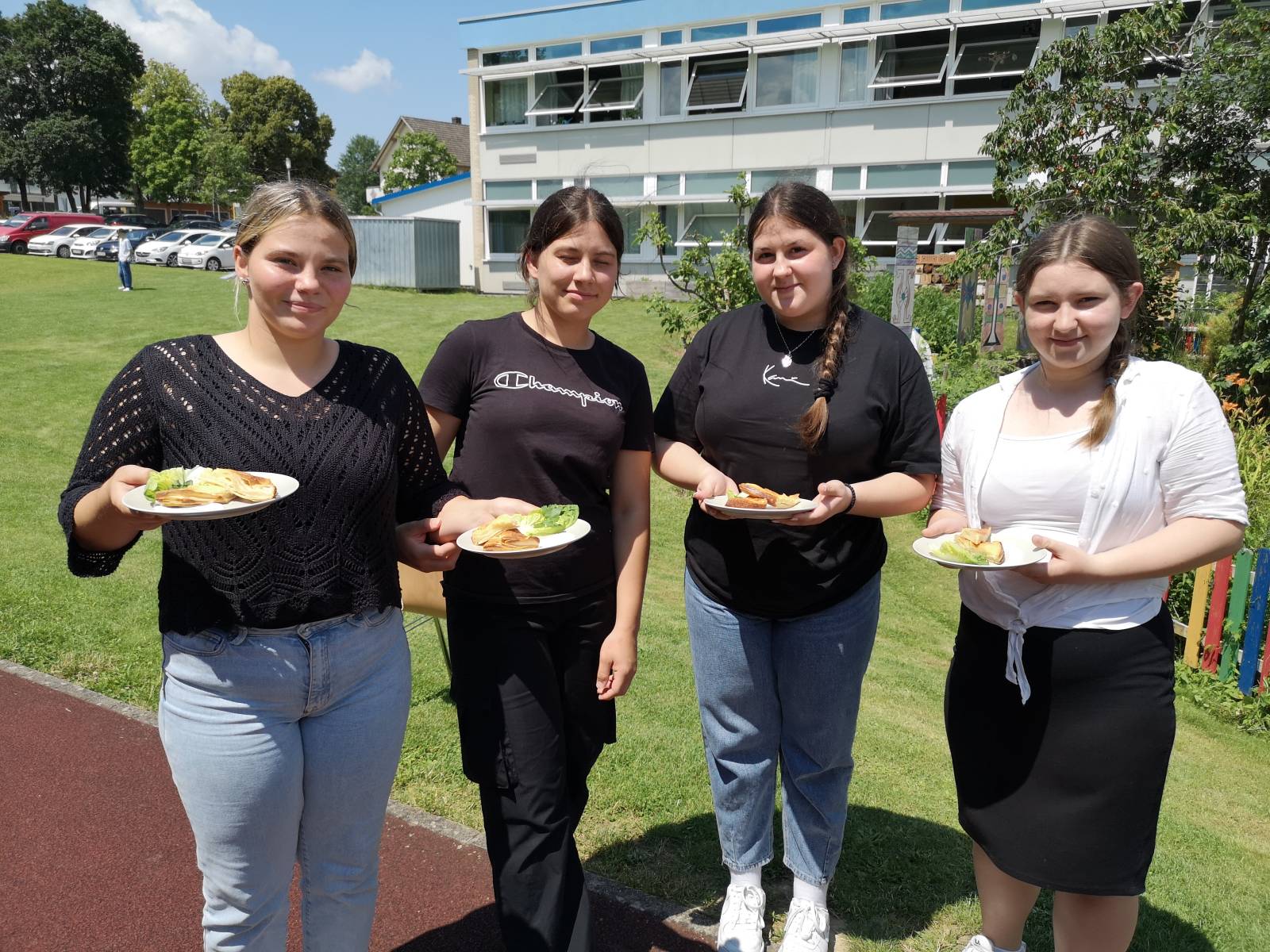 Wolke Dähmlow, Kathleen Ernst, Anatsaija Zivojinovic und Alexandra Wagner beeindruckten die Jury als Team „Serbien“ mit Gebanica (Käselasagne) als Vorspeise, Karadjordjeva snicla (gefüllte Schnitzel mit Frischkäse und Käse & Kartoffelwedges) als Hauptspeise und Cupavci (saftiger Kuchen im Schokoladenmantel mit Kokosraspeln) als leckeres Dessert.