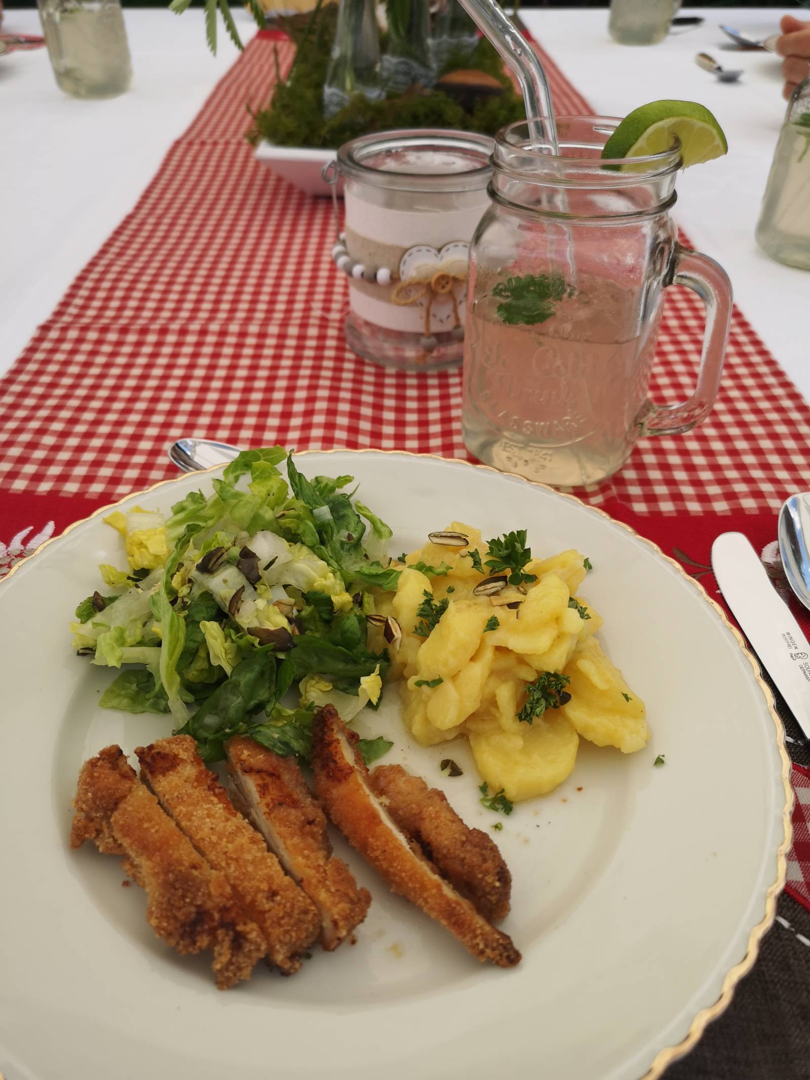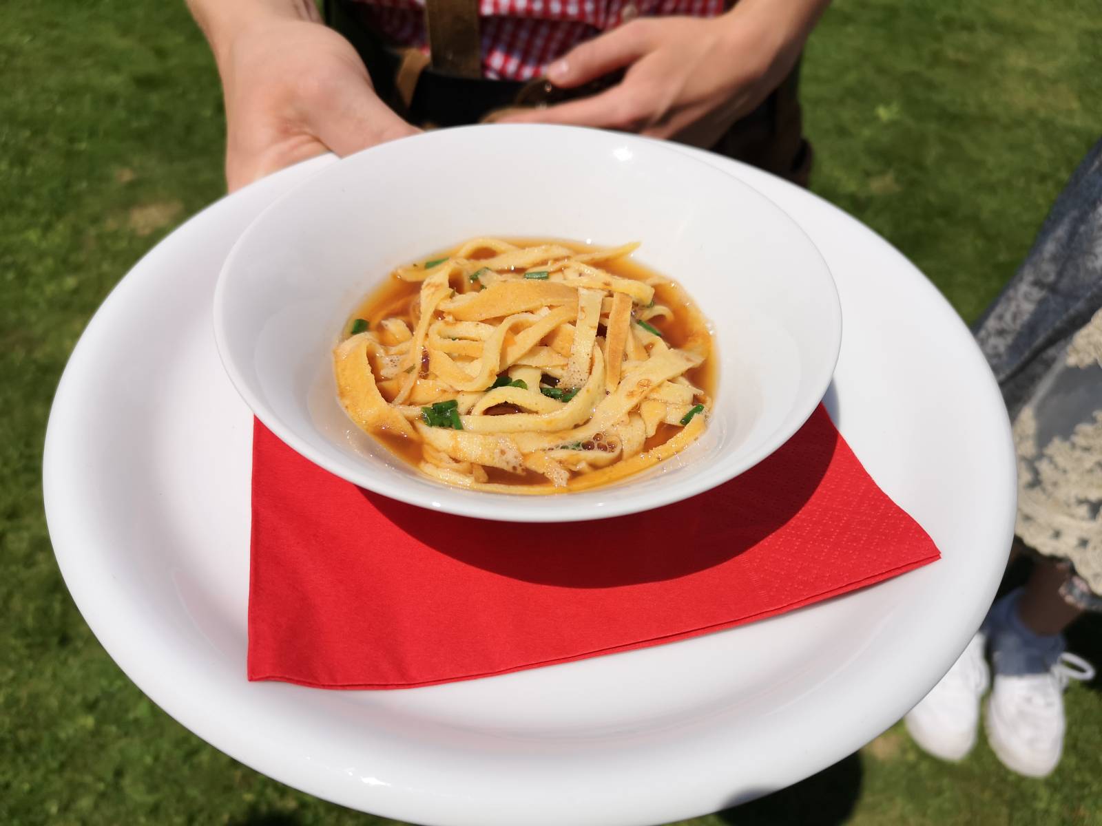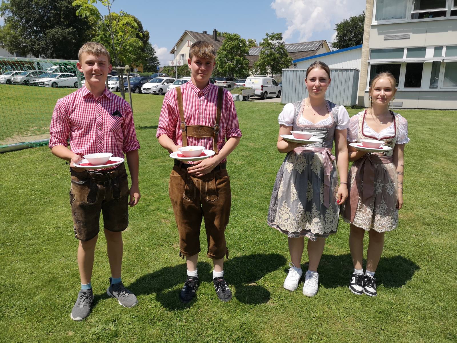 Moritz Kirchner, Lennard Kirchner, Rosalie Maier und Luisa Ardelmann traten als Team „Österreich“ in landestypischer Tracht – Krachlederne und Dirndl – an und zauberten vornweg eine Frittatensuppe, der ein Steirischer Backhendlsalat folgte. Als süße Abrundung wurde ein Kaiserschmarrn mit selbstgemachtem Apfelmus gereicht.