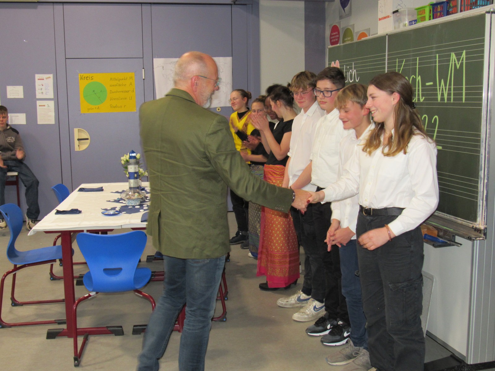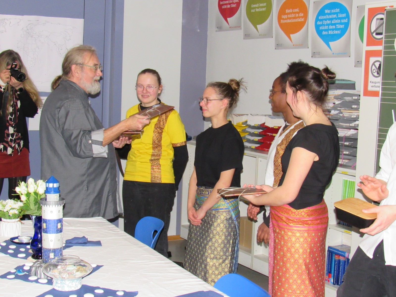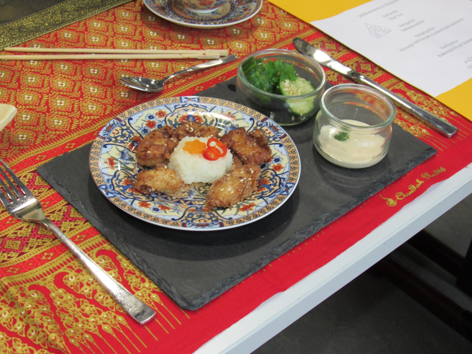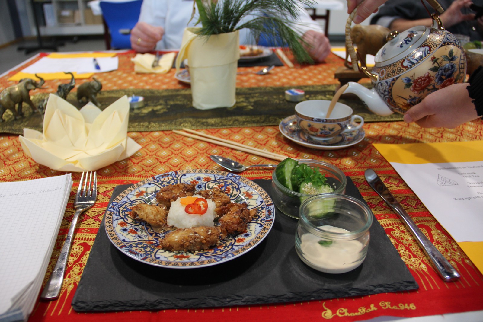 Im Vorfeld entscheiden die Teams mitsamt ihren Coaches, welches Land sie vertreten. Absolut zufrieden mit ihrer Wahl war das griechische Schulteam. Mit dem „leckeren griechischen Essen“ erreichten sie wie die Teams aus Thailand und Japan das Finale. An den Tischen warteten fünf Jurymitglieder. Darunter mit Pit Lang aus der Krone in Villingendorf und Wilhelm Maier vom Pflug in Rottweil zwei Profis. „Bei mir werdet ihr es schwer haben“, warnte Lang das Team Thailand. „Aber ich freu mich riesig, ich bin Thailandfan“. Enttäuscht wurde er nicht. Das Team heimste für seine Sommerrolle als Vorspeise, Karaage zur Hauptspeise und Kokosquark zum Nachtisch viel Lob ein und punktete mit Wissen zum Land und Kultur.