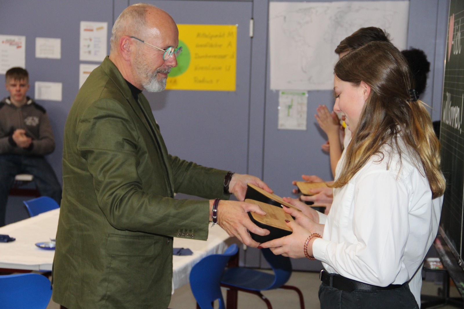 Eine berufliche Kompetenz, die von der Industrie- und Handelskammer (IHK) fortan Anerkennung finde, erläuterte das dritte Jurymitglied in der Runde Klaus-Peter Ringgenburger das jüngsten Projekt der IHK. Um dem Fachkräftemangel entgegenzuwirken, soll neben dem notwendigen Anwerben ausländischer Kräfte, auch Berufserfahrung ohne Ausbildung zertifiziert werden können. Die Villingendorfer Schule mit Rainer Kropp-Kurta als engagiertem Rektor, bezeichnete Ringgenburger als Vorbild. Die Schule fördere die Ausbildung und suche die Kooperationen nicht nur mit kaufmännischen, sondern auch mit handwerklichen und gastronomischen Betrieben, lobte er.