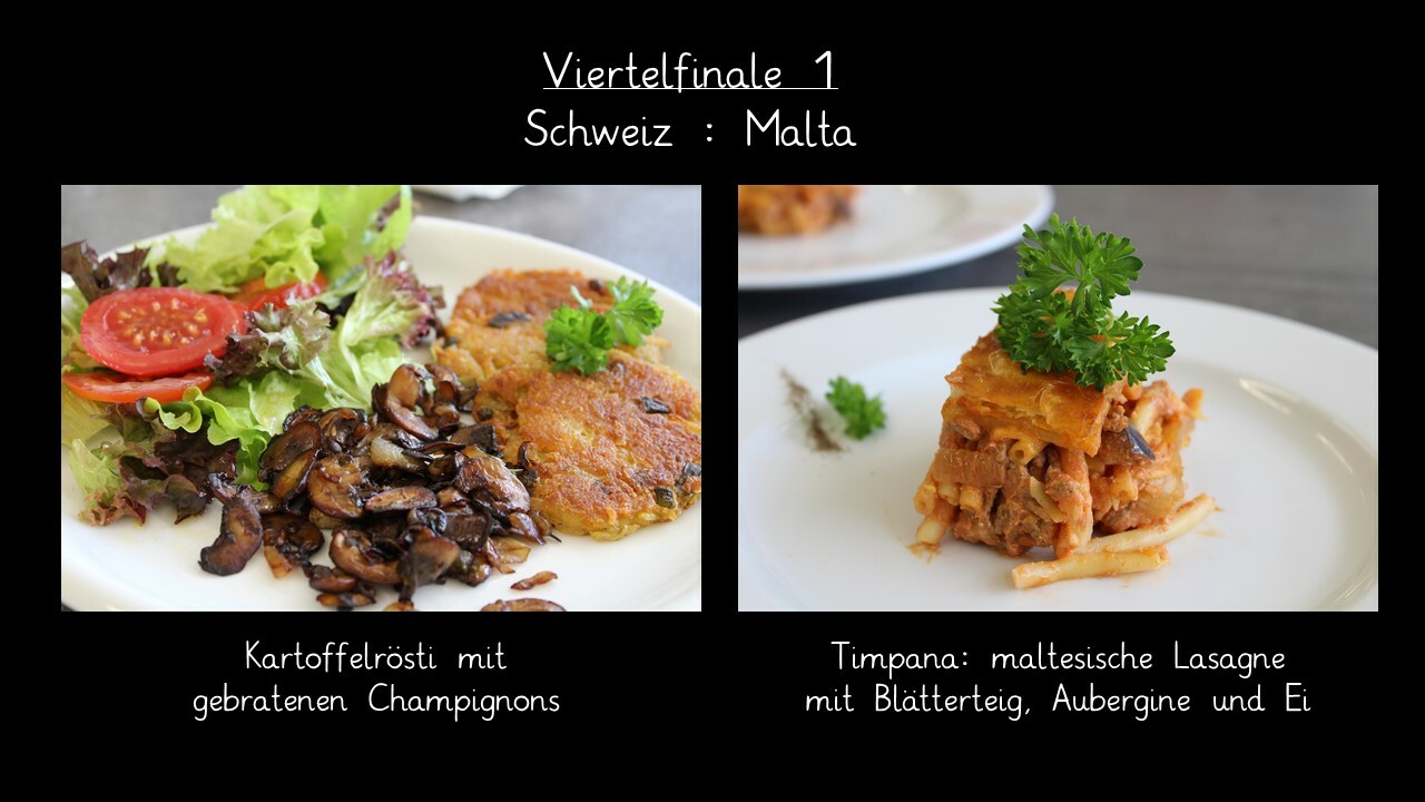 Heute starteten für die Neunt- und Zehntklässler, die sich bereits in der Vorrunde qualifiziert haben, die Kochduelle im Viertelfinale der Koch-EM. Die Jury, bestehend aus einem Schüler, einem Lehrer und einem externen Partner der Schule, wurden heute kulinarisch verköstigt und vergaben bereits ihre Tore.