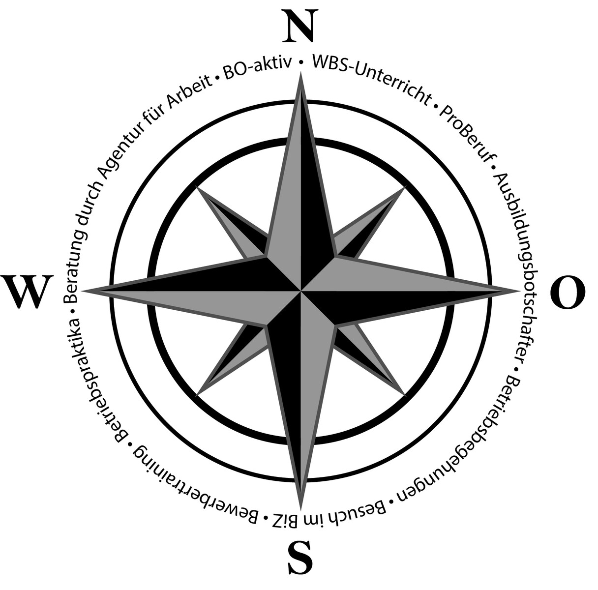In Klassenstufe 8 liegt der Fokus an unserer Schule besonders auf der Berufsorientierung und Berufswegeplanung – um dieser Ausrichtung einen Namen zu geben und diese zu verbildlichen, wird die Klassenstufe 8 als „Kompassklasse“ bezeichnet. Der Anspruch ist es, ähnlich einem Kompass, den Schülerinnen und Schülern mögliche Wege aufzuzeigen und mit ihnen gemeinsam die für sie passende Richtung zu finden.