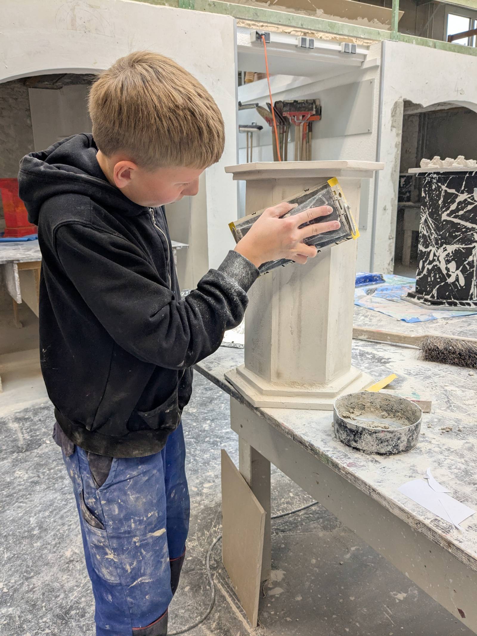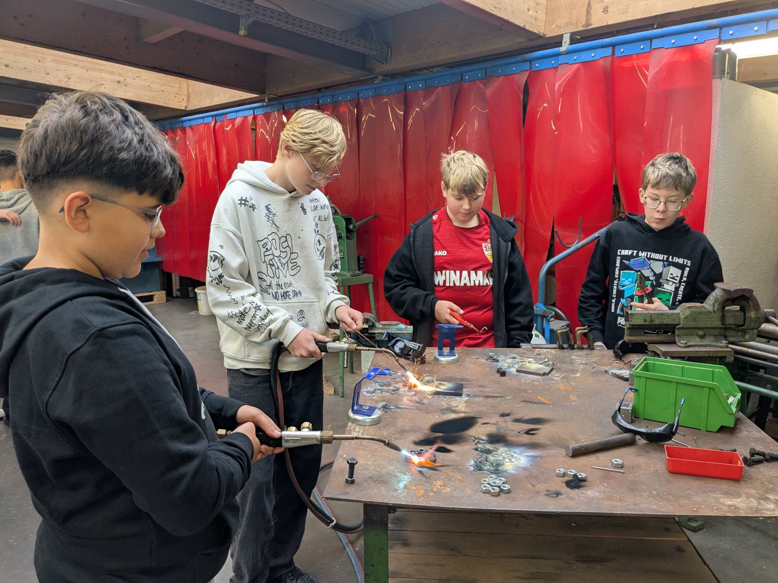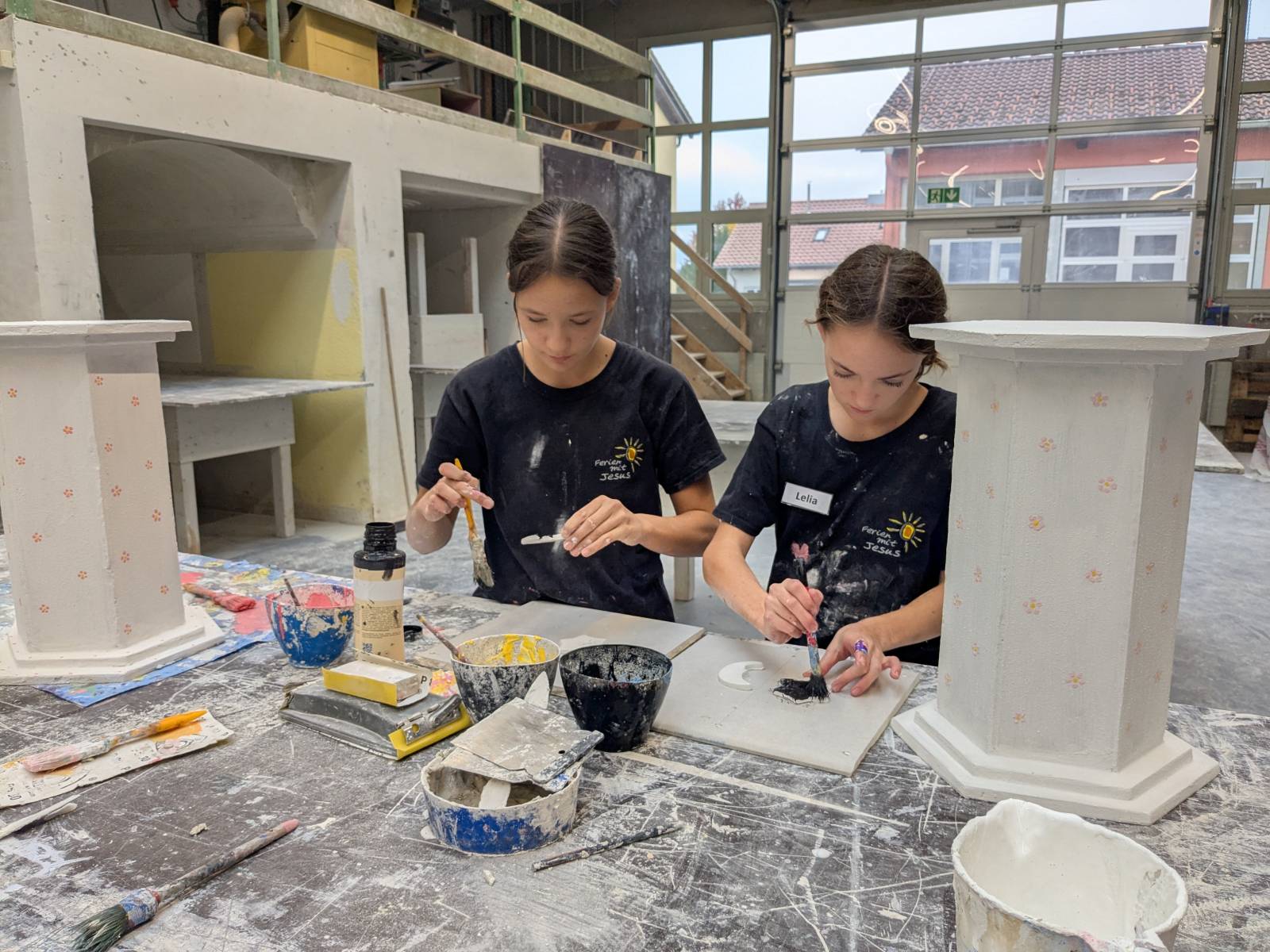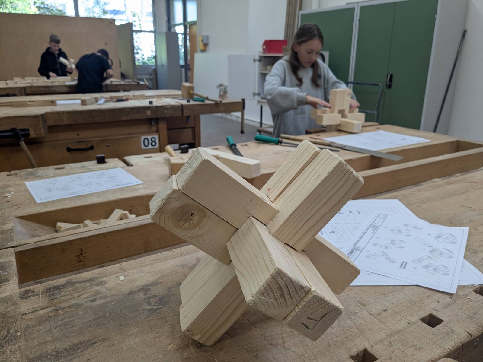 An jeweils zwei Tagen erhielten die Jugendlichen Einblicke in unterschiedliche Berufe – darunter Stuckateur, Zimmerer, Schreiner, Friseur, Bäcker, Bäcker und Verkauf, Büro und Metall-Handwerk. Unter der fachkundigen Anleitung erfahrener Meisterinnen und Meister entstanden zahlreiche kreative Werkstücke: kunstvoll verzierte Gipskarton-Säulen, Teufelsknoten aus Holz, Herzuhren aus Metall, fantasievolle Frisuren sowie köstliche Backwaren.