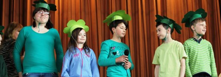 Die Klassen 1b und 4b zeigten einen lustigen Sketch über das Glückskleeblatt und begeisterten das Publikum mit einer Tanzaufführung. Ohne Zugabe kamen die Darsteller nicht von der Bühne.