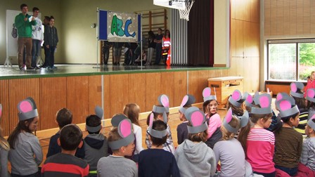 Anschließend führte die Klasse 1a das Gedicht „ ABC der Mäuse“ auf. Sie haben sich als Mäuse verkleidet. Das Gedicht haben sie sehr toll vorgetragen.
