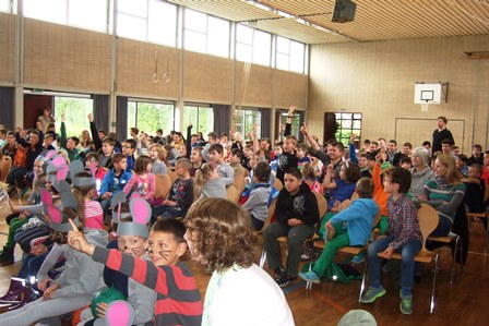 Am Donnerstag den 15.5.2014 fand die Assembly statt. Wir, die Klasse 4a eröffneten mit einem Sockentheater die Assembly. Mit Hilfe unserer Lehrerin Frau Besemer gestalteten wir in den letzten Wochen Sockentiere. Jedes Sockentier sah anders aus. Gemeinsam studierten wir eine Choreographie auf Musik ein. Es war sehr lustig.