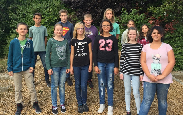 Reihe vorne (von links nach rechts): Julian (7), Vanessa (6b), Lara (6a), Lena (6a), Alina (6a), Meric (6a)