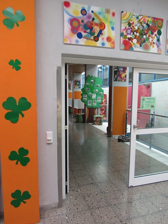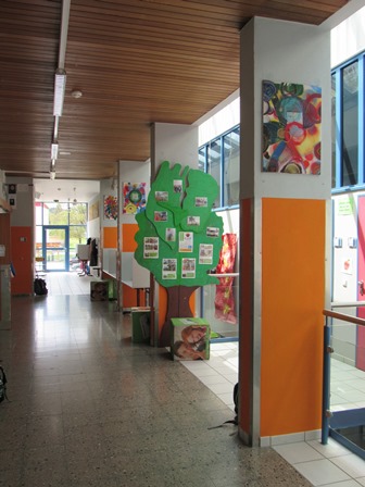 Wir, die Sozialwerkstatt Schulhausgestaltung, sind für das Gestalten und Verzieren des Schulhauses zuständig. In den letzten Wochen haben wir es uns zur Aufgabe gemacht, das Obergeschoss durch orangene Akzente zu gestalten. Jede Woche haben wir uns mit Farbe, Pinsel und Farbrollen an die grauen Säulen gemacht und fleißig gestrichen. Und das Ergebnis kann sich mit den Kunstwerken der Klassenstufe 6 sehen lassen!