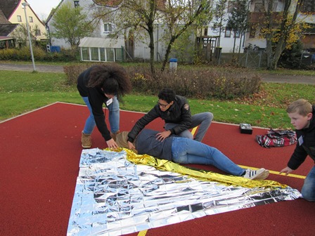 Auch in diesem Schuljahr werden wieder fleißige Schulsanitäter ausgebildet. Unter Anleitung der Malteser lernen die Schülerinnen und Schüler wichtige Vorgehensweisen und Handgriffe die bei einer ersten Hilfe wichtig sind. Schon jetzt zeigen sie großes Engagement auf dem Schulhof, wenn sie täglich bei ihrem Schulsanitätsdienst ihren Mitschülerinnen und Mitschülern zur Seite stehen.