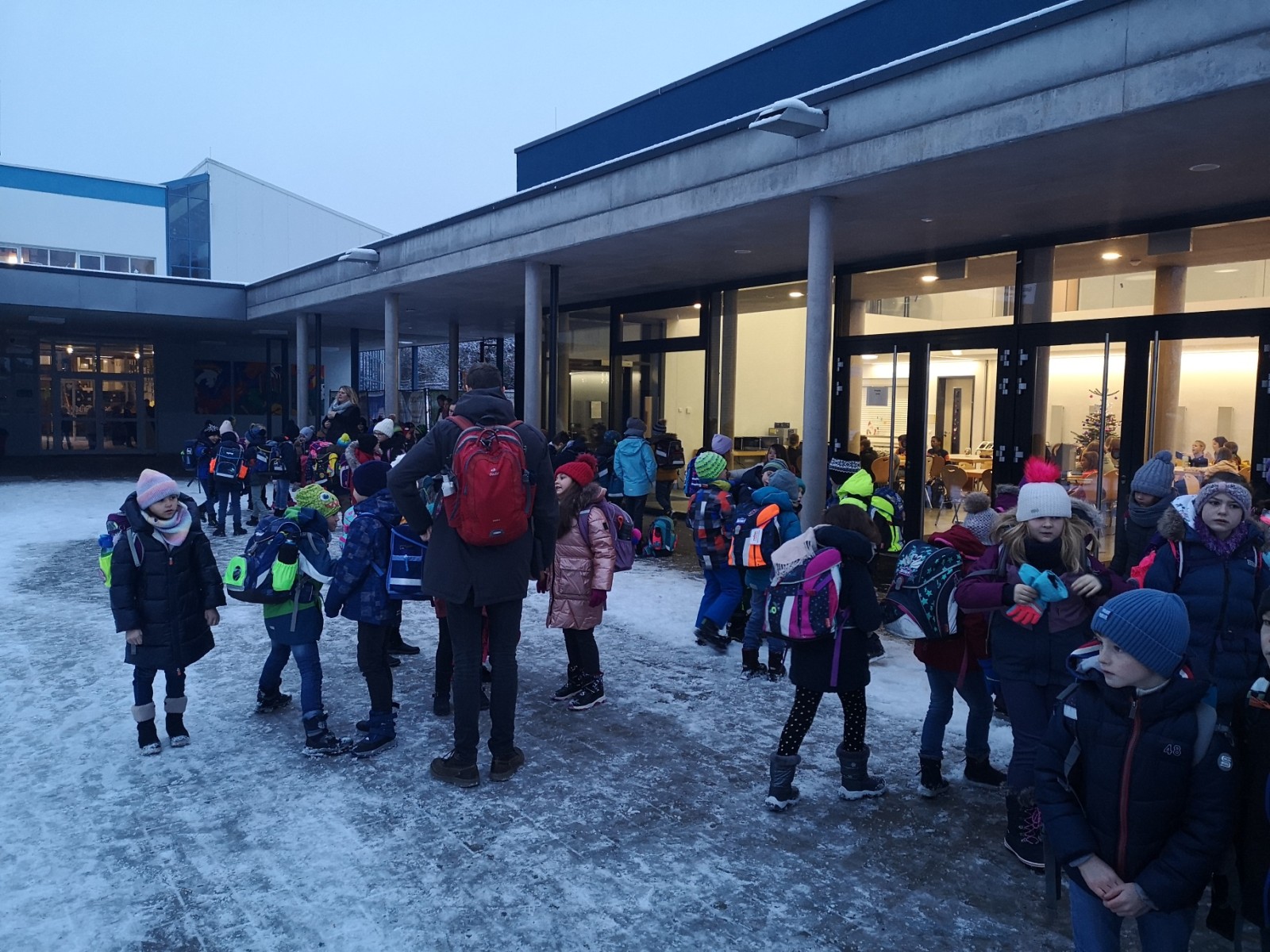 Samu aus der Kl. 2a empfand die Situation als komisch, aber lustig, Luan aus der Parallelklasse cool. Maxim aus der Klasse 2b hatte sich sogar so darauf gefreut, dass er fast nicht schlafen konnte. Sofia aus der Klasse 2a hingegen will erst einmal nicht mehr, dass es so schnell wieder passiert. Doch sie muss die drei Tage bis zu den Weihnachtsferien noch durchhalten, denn die Handwerker suchen noch fieberhaft nach der Ursache des Heizungsausfalls. Can und Isabella aus der vierten Klasse sind schon gespannt, denn ihr Klassenraum wird am Montag und Dienstag der Sitzungssaal im neuen Rathaus sein.