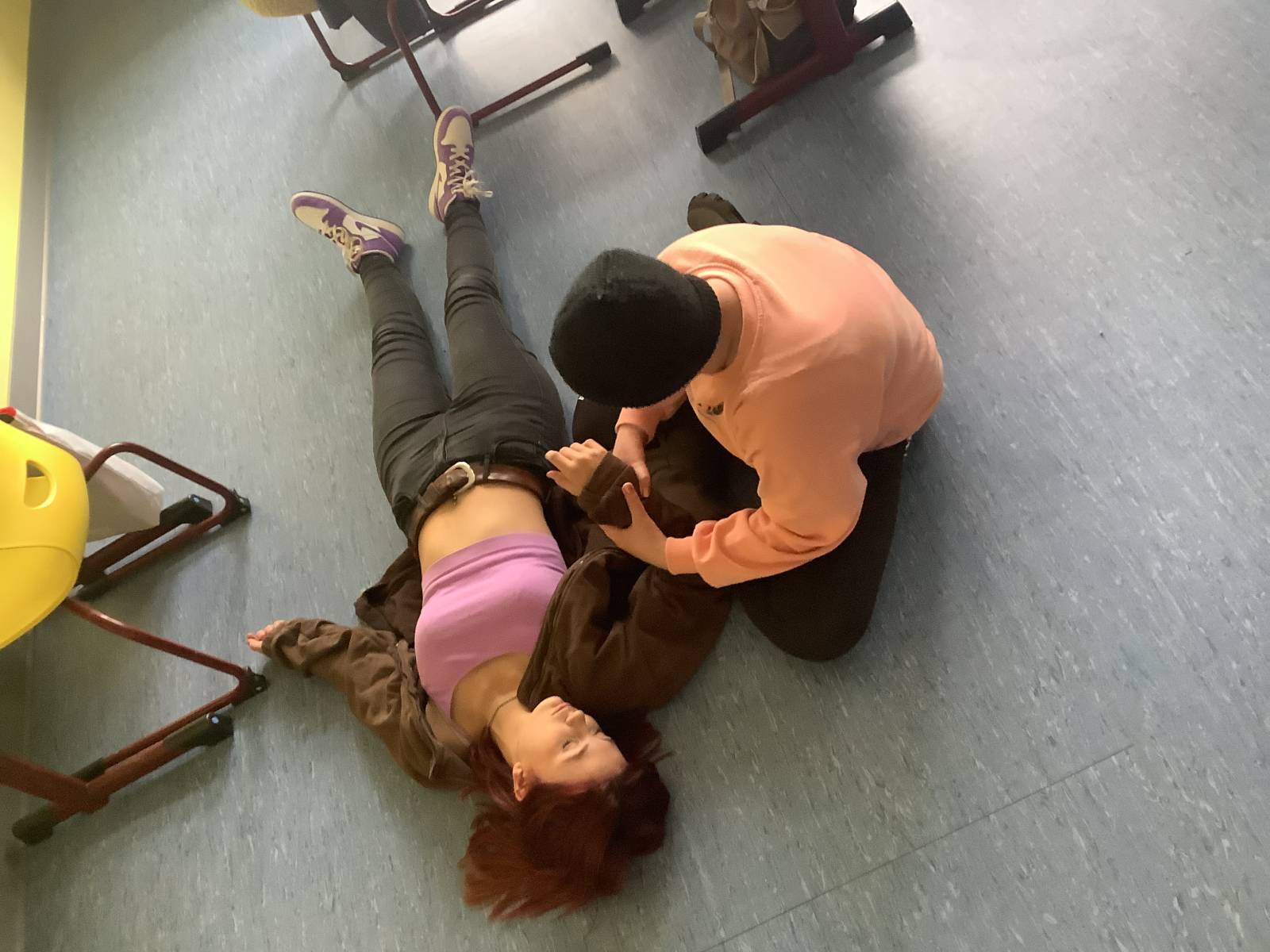 Hierzu setzen sie sich zuerst mit den Maßnahmen auseinander, wie sie anderen Schülerinnen und Schülern helfen können und bekommen hoffentlich, sobald die nötigen Grundlagen und Strukturen aufgebaut sind, noch die Chance ihr Wissen als Schulsanitäter einsetzen zu können. Mit großem Eifer lernen sie jedoch schon Erste-Hilfe-Maßnahmen und das Verhalten in Notfällen.